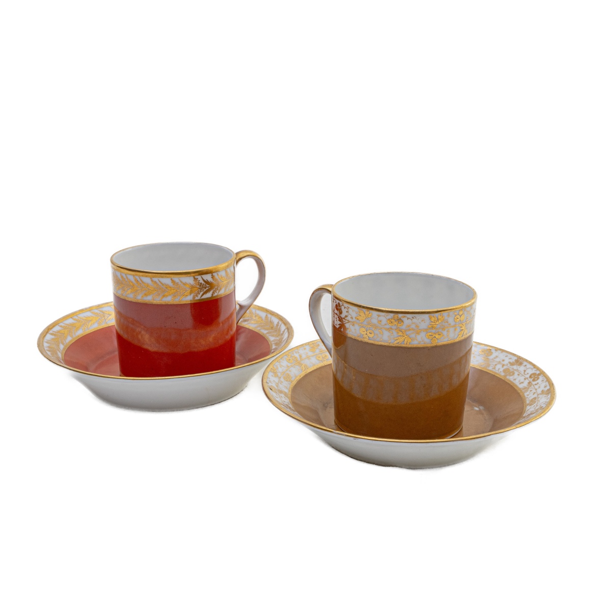 Lotto di due tazze a litron in porcellana policroma Francia, inizi XIX secolo