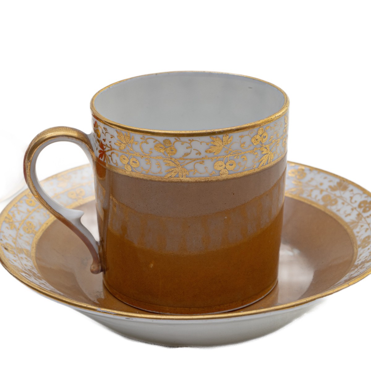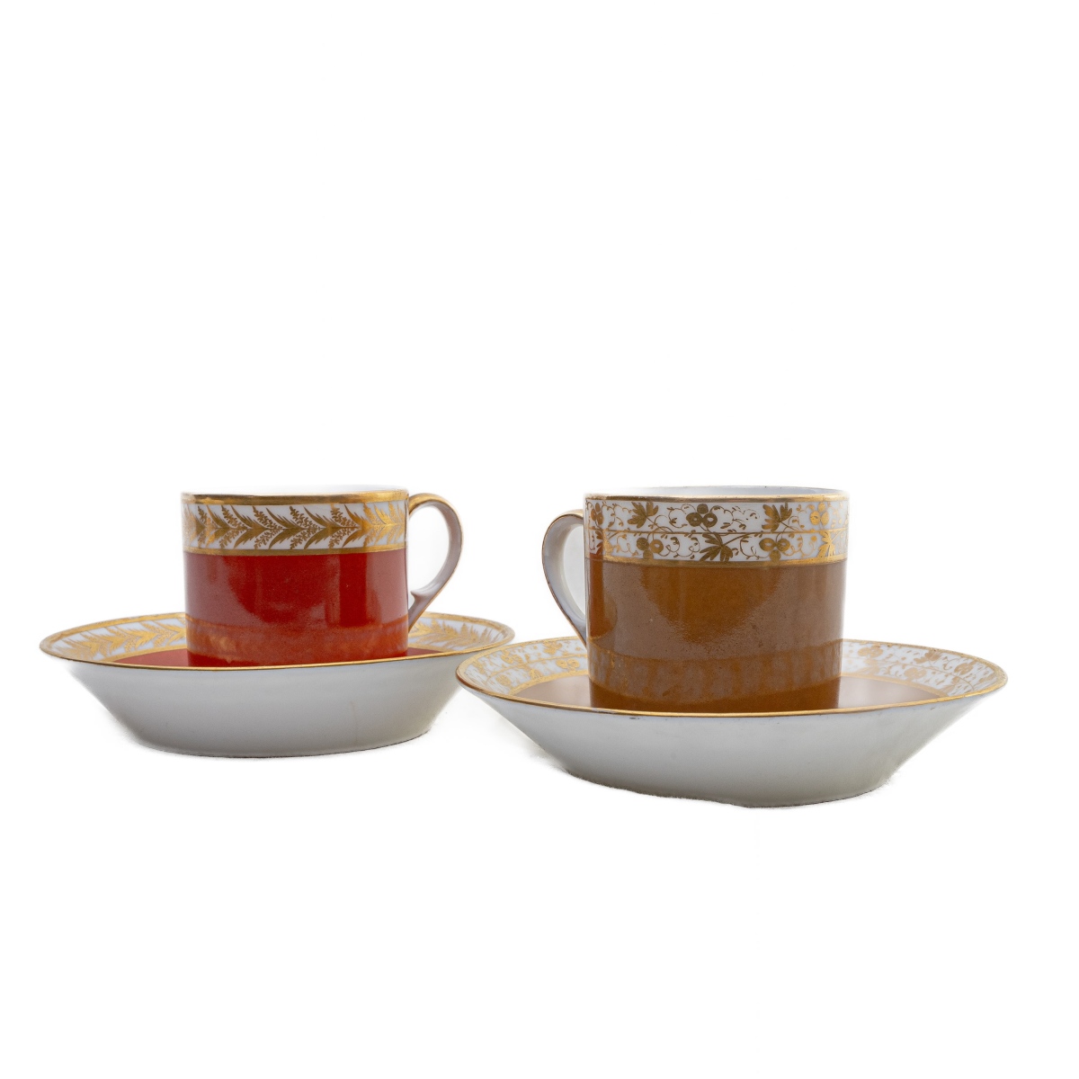Lotto di due tazze a litron in porcellana policroma Francia, inizi XIX secolo tazza 6 x 6 cm: piatto 2,6 x 13 cm