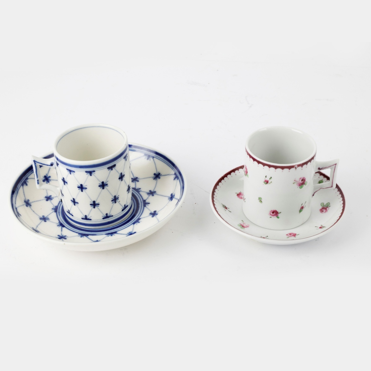 Lotto di due tazze con piatto , seconda metà XVIII secolo 6,5 x 5,5 cm e 14,5 x 3 cm 6,5 x 5,5 cm e 11 x 2 cm