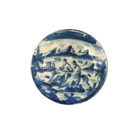Piatto in ceramica bianca e blu metà XVIII secolo