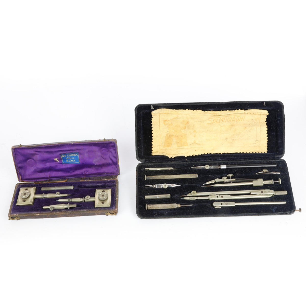 Lotto di due astucci compassi e strumenti di calcolo inizio XX secolo