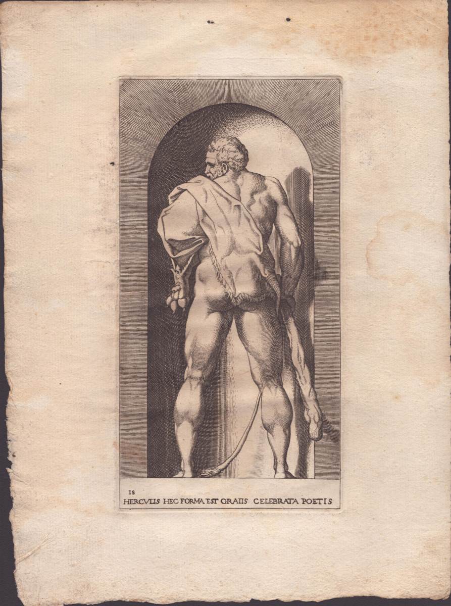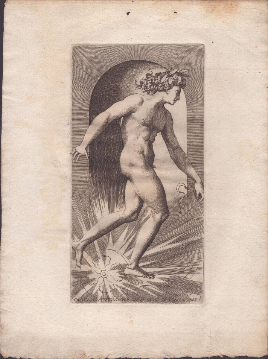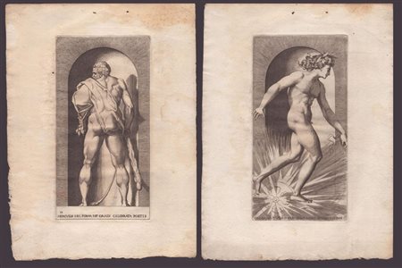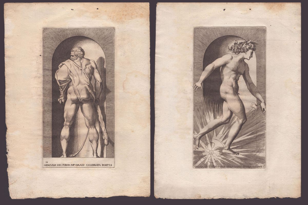 da Rosso Fiorentino, con i ritocchi di Francesco Villamena. Bulino, 205 x 111 mm e 213 x 110 mm (lastra), 295 x 220 mm ca (foglio). Dalla serie di 20 incisioni con le divinità mitologiche, stato III/III, ritoccato da Villamena, sopratutto nella parte dei bordi attorno alle nicchie, ricoperti di tagli. B.XV.78.34.11 e 15.