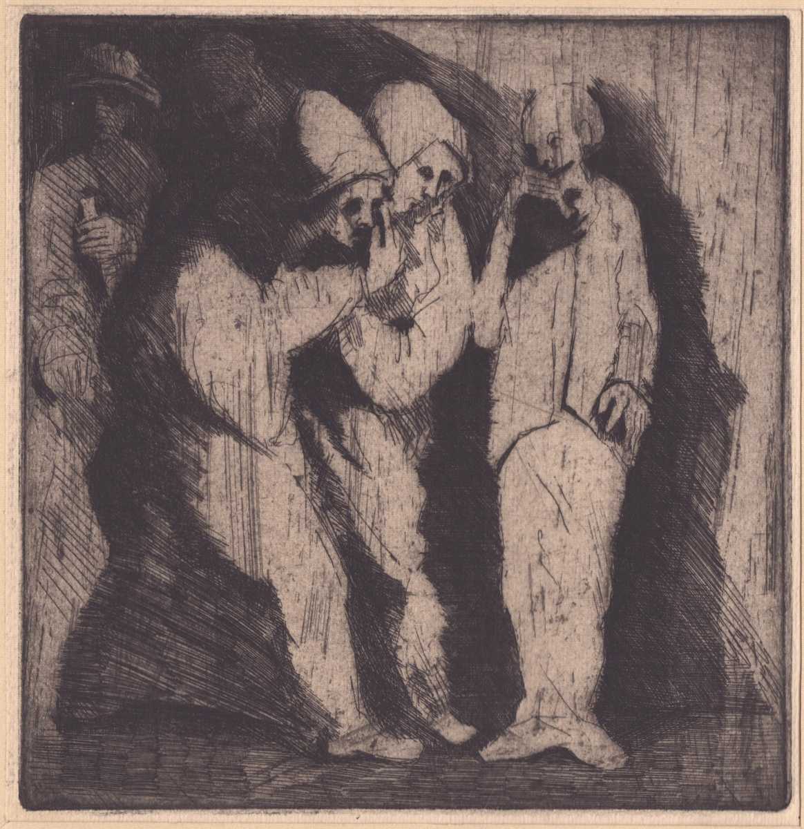 Due incisioni a puntasecca, 115 x 115 mm e 118 x 114 mm (lastra), 155 x 132 mm e 142 x 140 mm (foglio). Bellissime, nitide e fresche impressioni su cartoncino (una sul verso di una 'altra prova). Con passe-partout (incollate lungo i bordi superiori). Ottime condizioni.