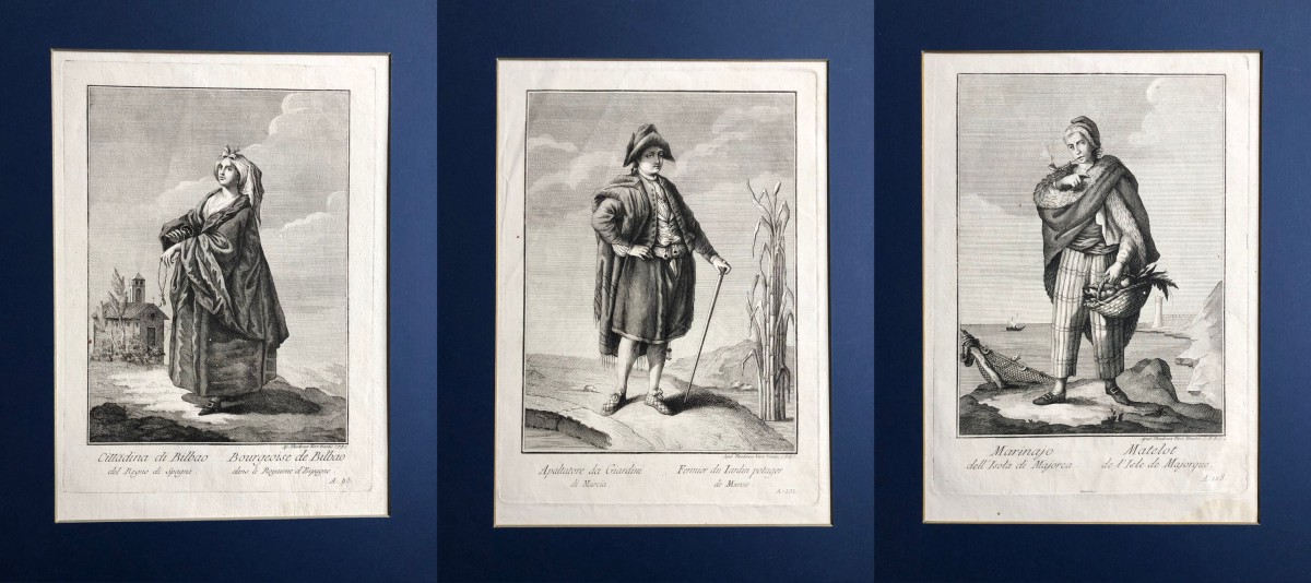 Teodoro Viero (1740 - 1819) "Marinajo dell'Isola di Majorca" | "Apaltore dei Giardini di Murcia" | "Cittadina di Bilbao del Regno di Spagna",