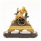 con scultura di fanciullo in bronzo dorato su base in metallo a patina bruna e piedini d'appoggio a voluta. Quadrante rotondo a numeri romani dorati con due fori per la suoneria e le ore. Macchina con sospensione a lamina d'acciaio e regolatore a pendolo e suoneria con campana in bronzo. Sul quadrante porta la scritta Vienna.