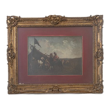 Al campo scuola olandese, metà XVII secolo dipinto ad olio su tela 36 x 48,5 cm