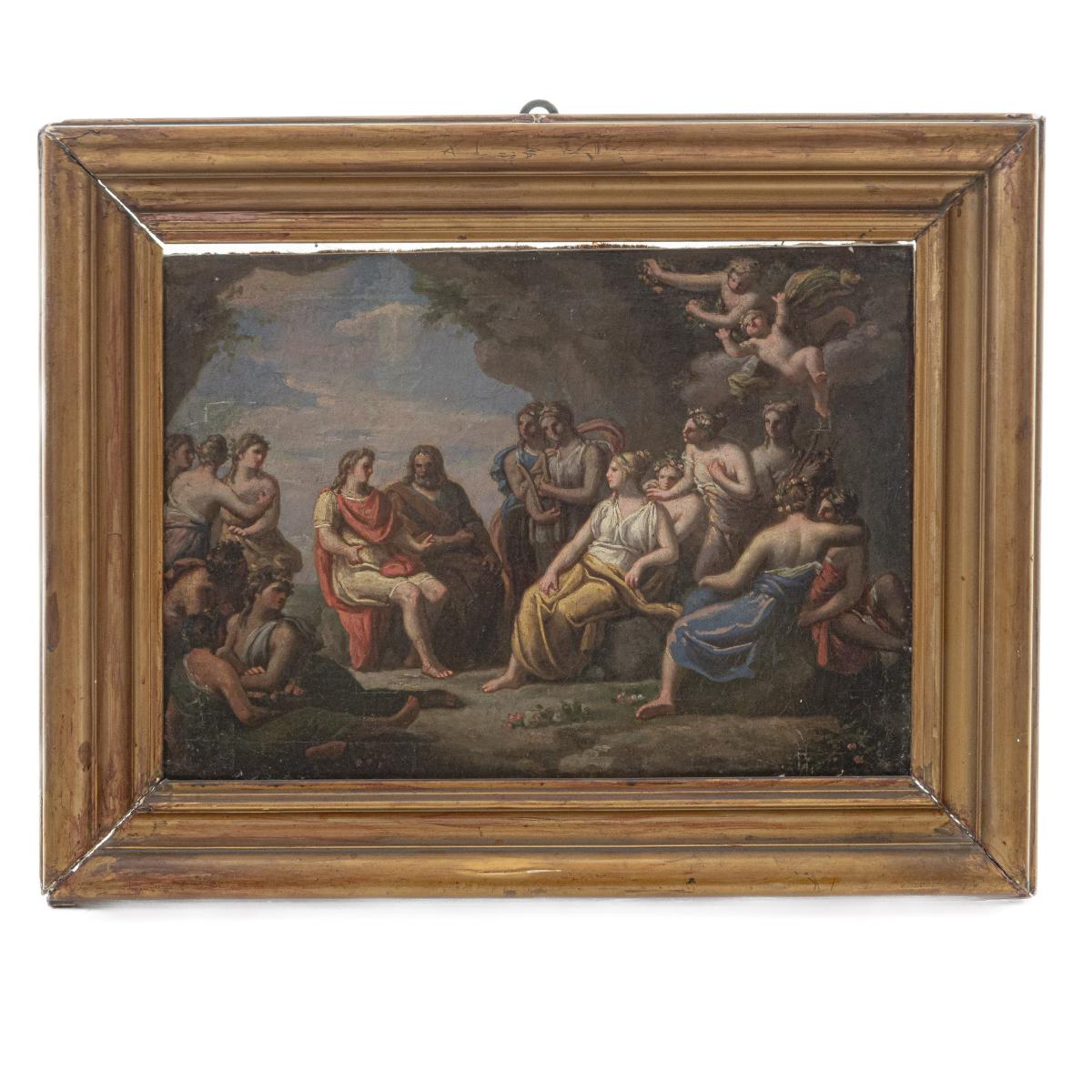 Convivio degli Dei fine XVIII inizi XIX secolo dipinto olio su tela 29 x 41 cm