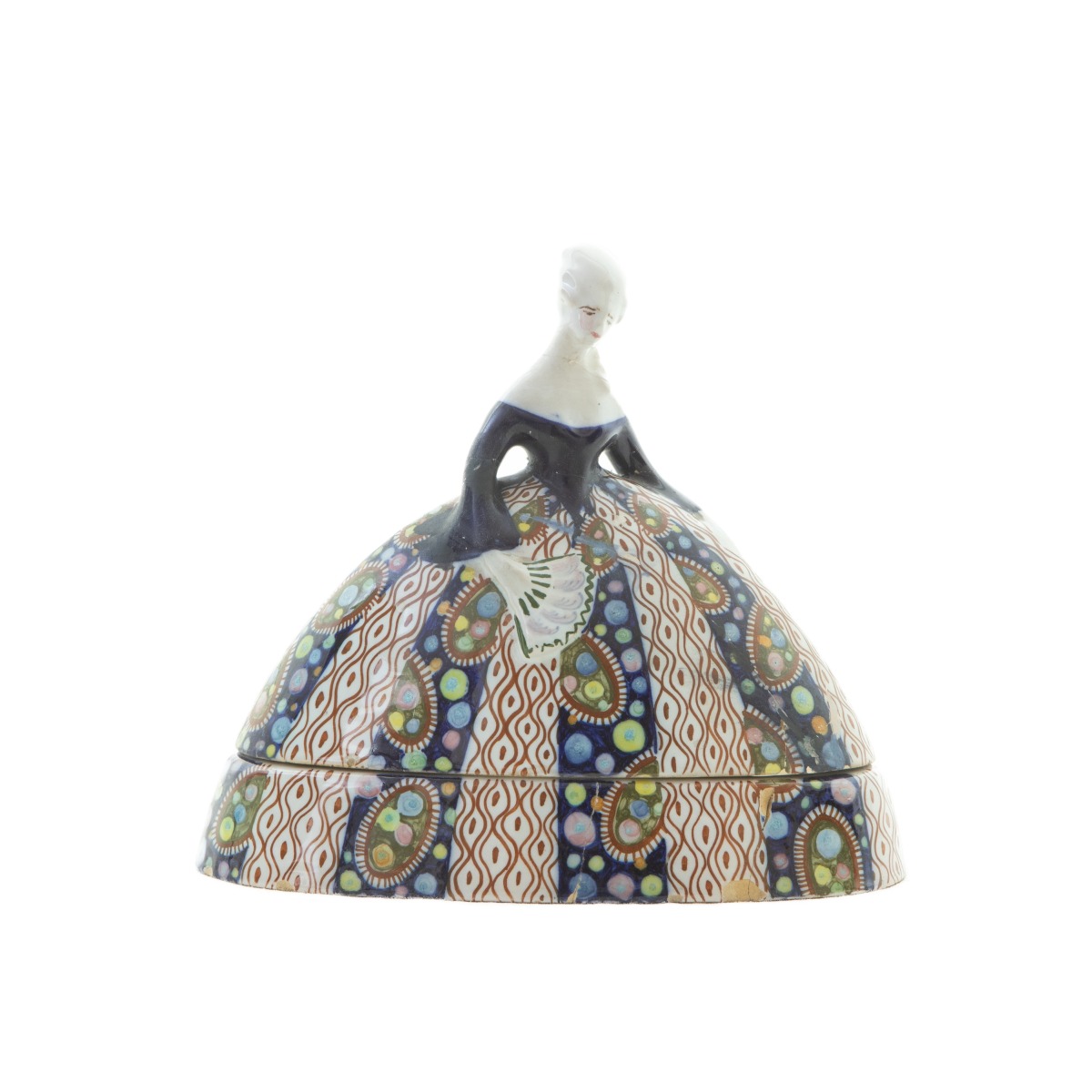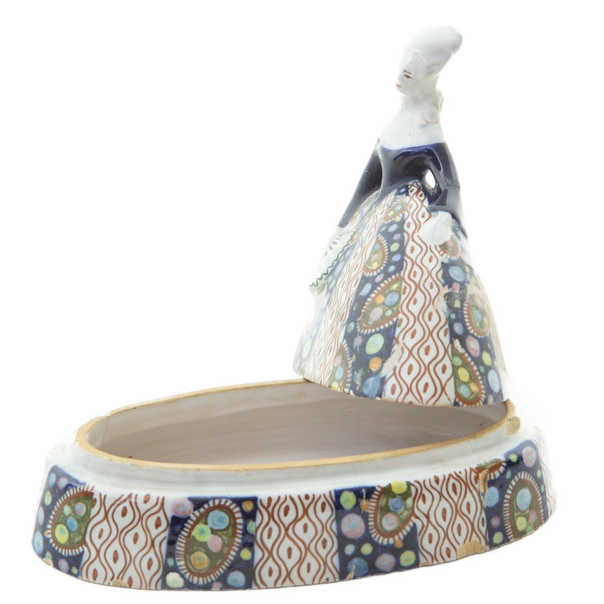 a forma di dama. Firma della manifattura in blu sotto smalto alla base