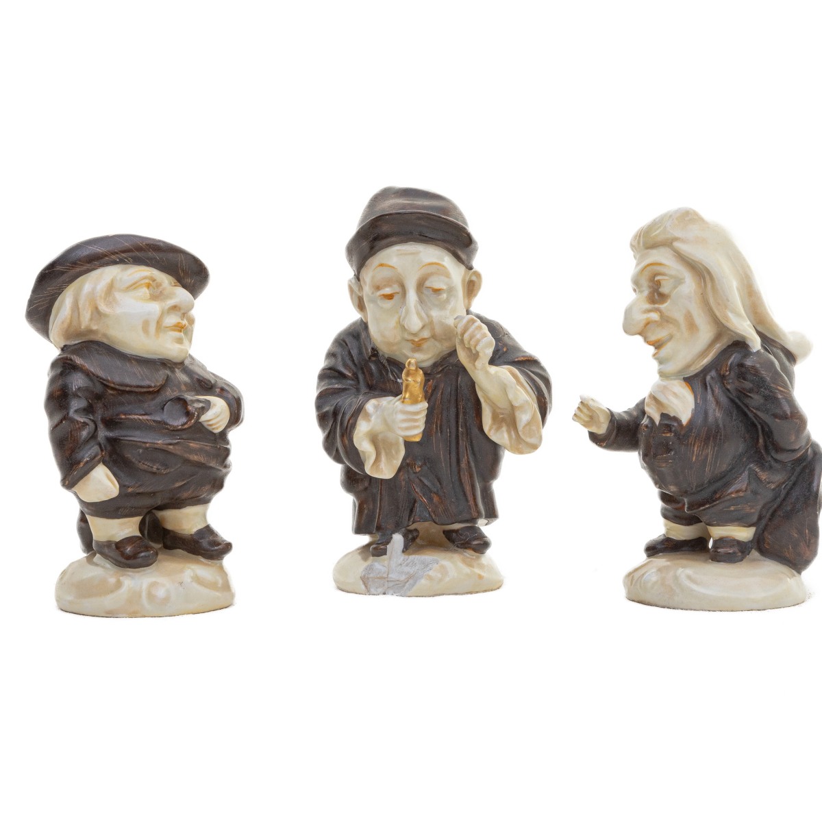 Lotto di tre caramogi in porcellana policroma metà XIX secolo