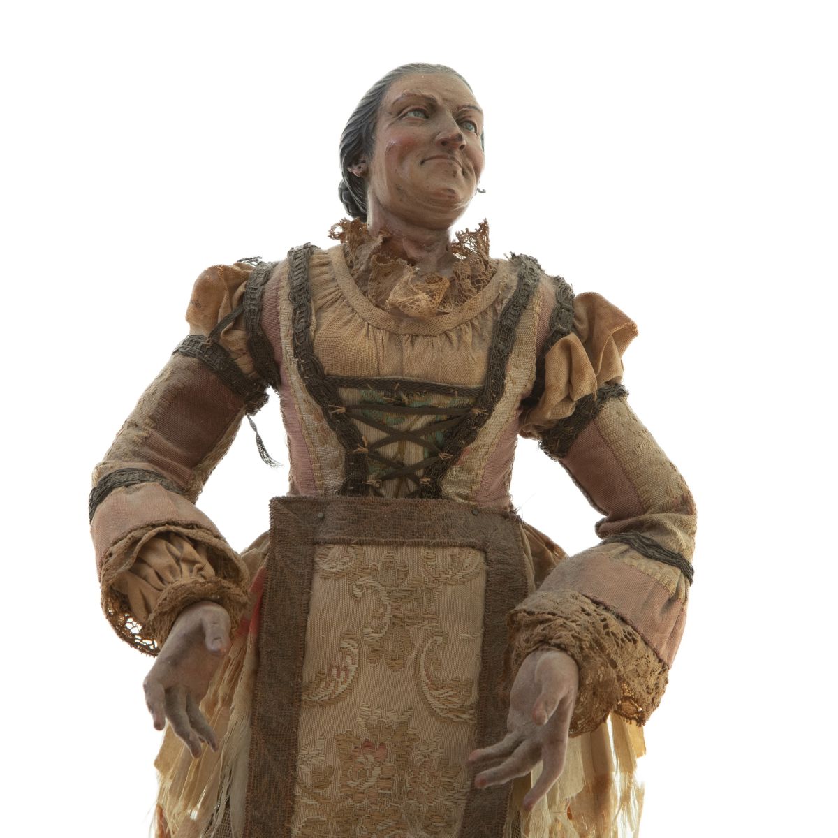 Popolana figura del presepe napoletano in ceramica e paglia XIX secolo 34 cm