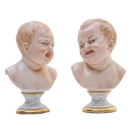 Coppia di bambini, busti in porcellana policroma metà XX secolo