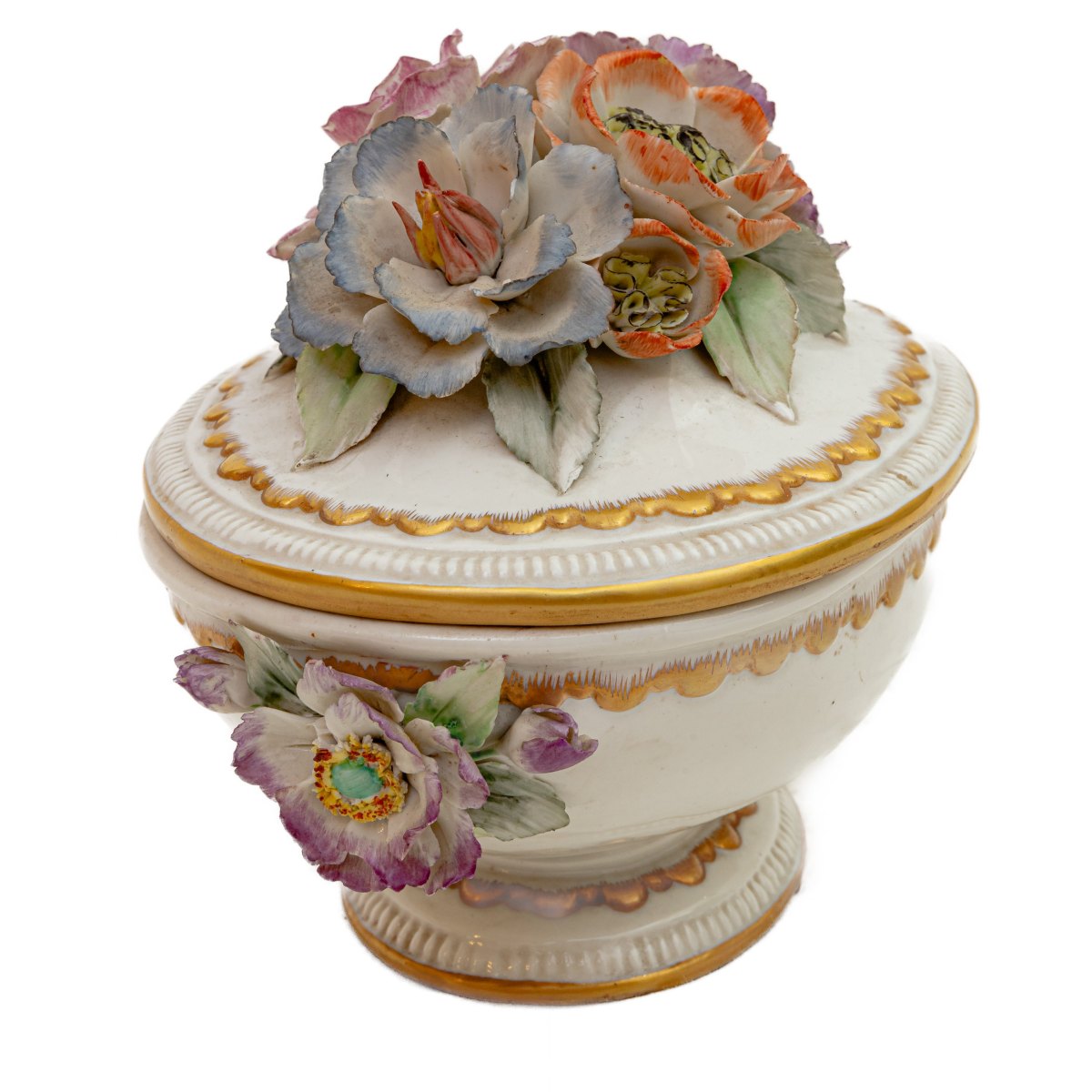 Scatola ovale in porcellana policroma metà XX secolo