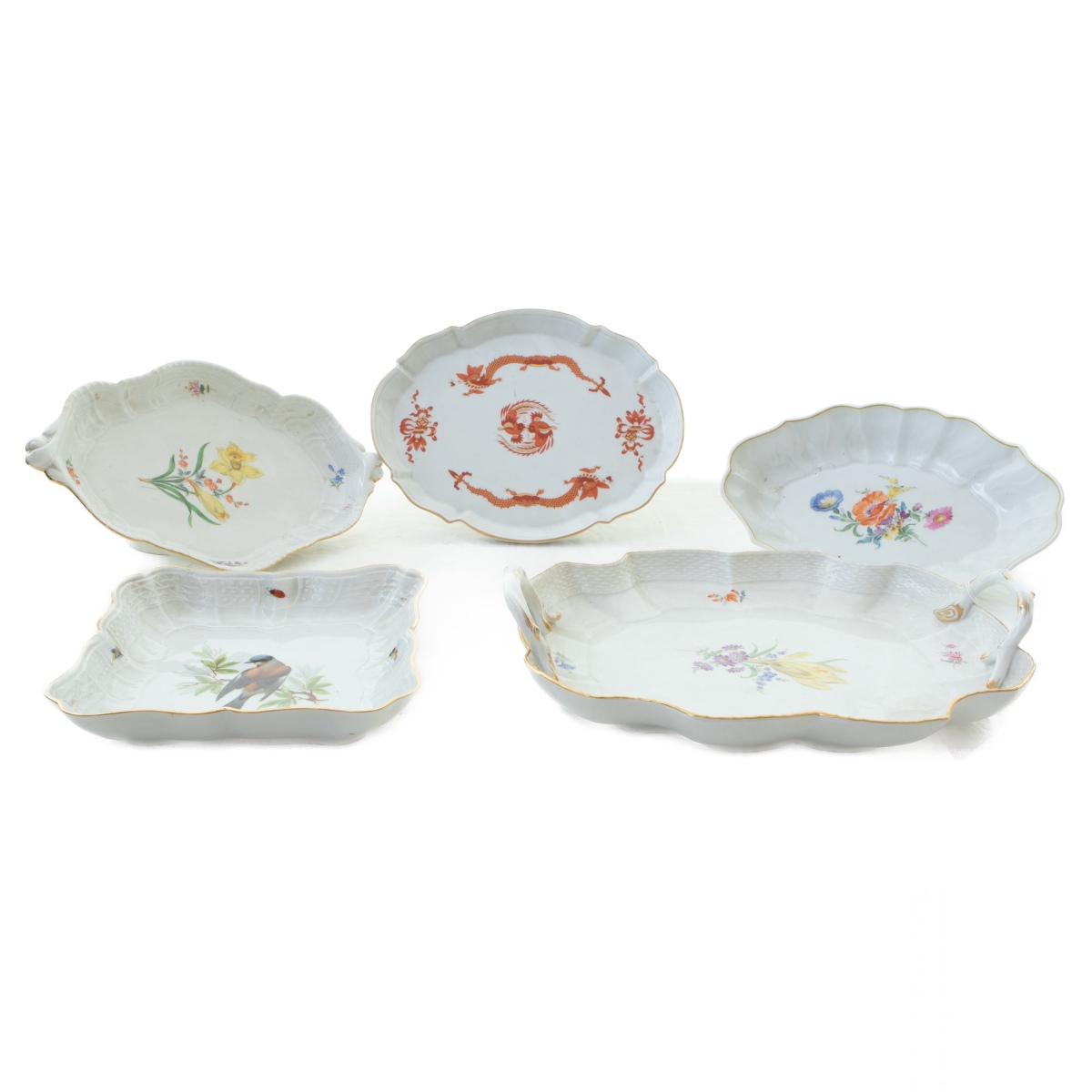 Lotto di cinque vassoi in porcellana bianca