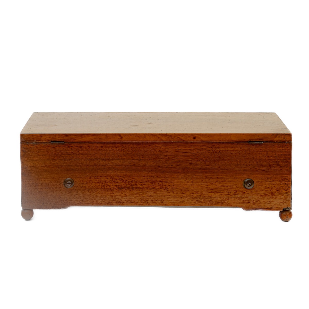 15 x 44,5 x 6 cm a sei canzoni, funzionante., entro scatola in legno di ciliegio.