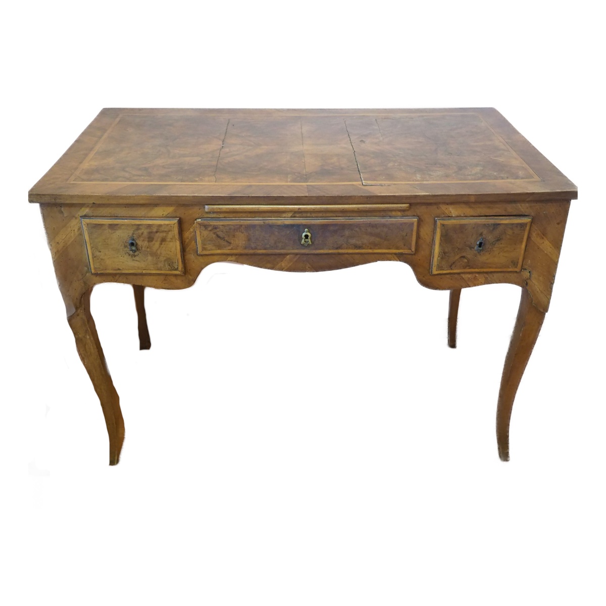 Scrivania a tre cassetti in noce e radica di noce fine XIX secolo inizi XX secolo
