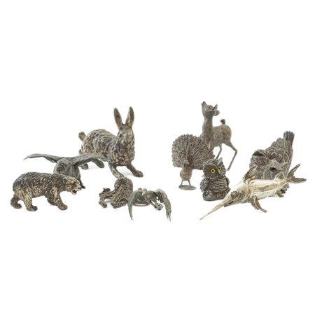 Collezione di sessanta sculture di animali in argentato 800/1000 metà XX secolo