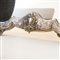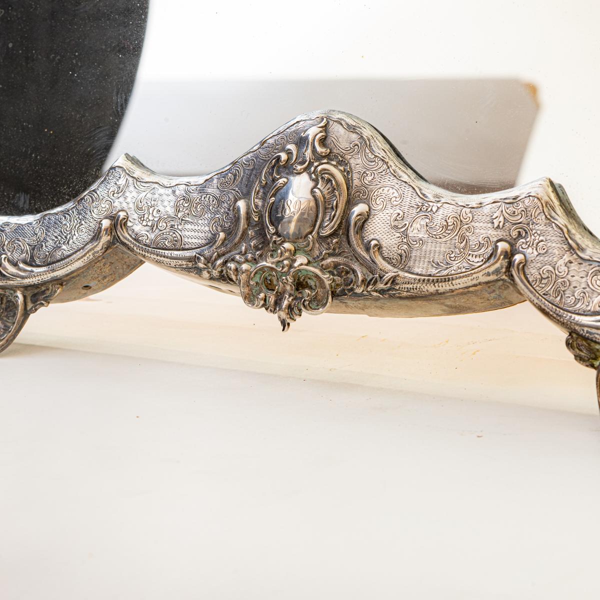 in argento 800/1000 e legno, di linea centinata con due piedi a virgola. Parti incise, ed a rilievo floreale, stemmata all'apice. Punzone e firma alla base.