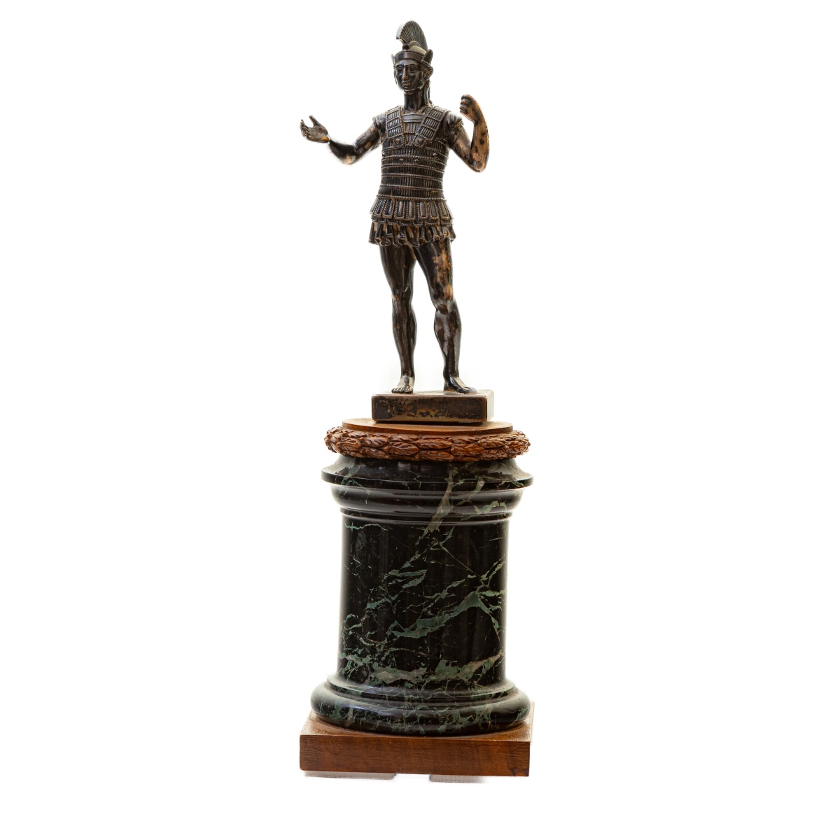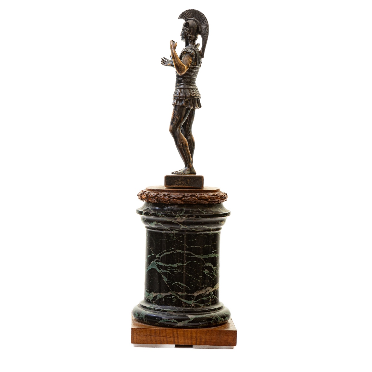 33 x 10 x 10 cm totali su base in marmo verde delle Alpi.