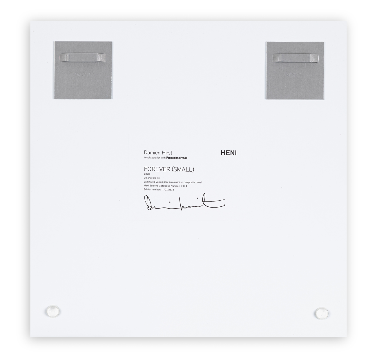 Firma e numerazione (Esemplare 1707/2573) stampate al retro su etichetta Heni con numero di catalogo