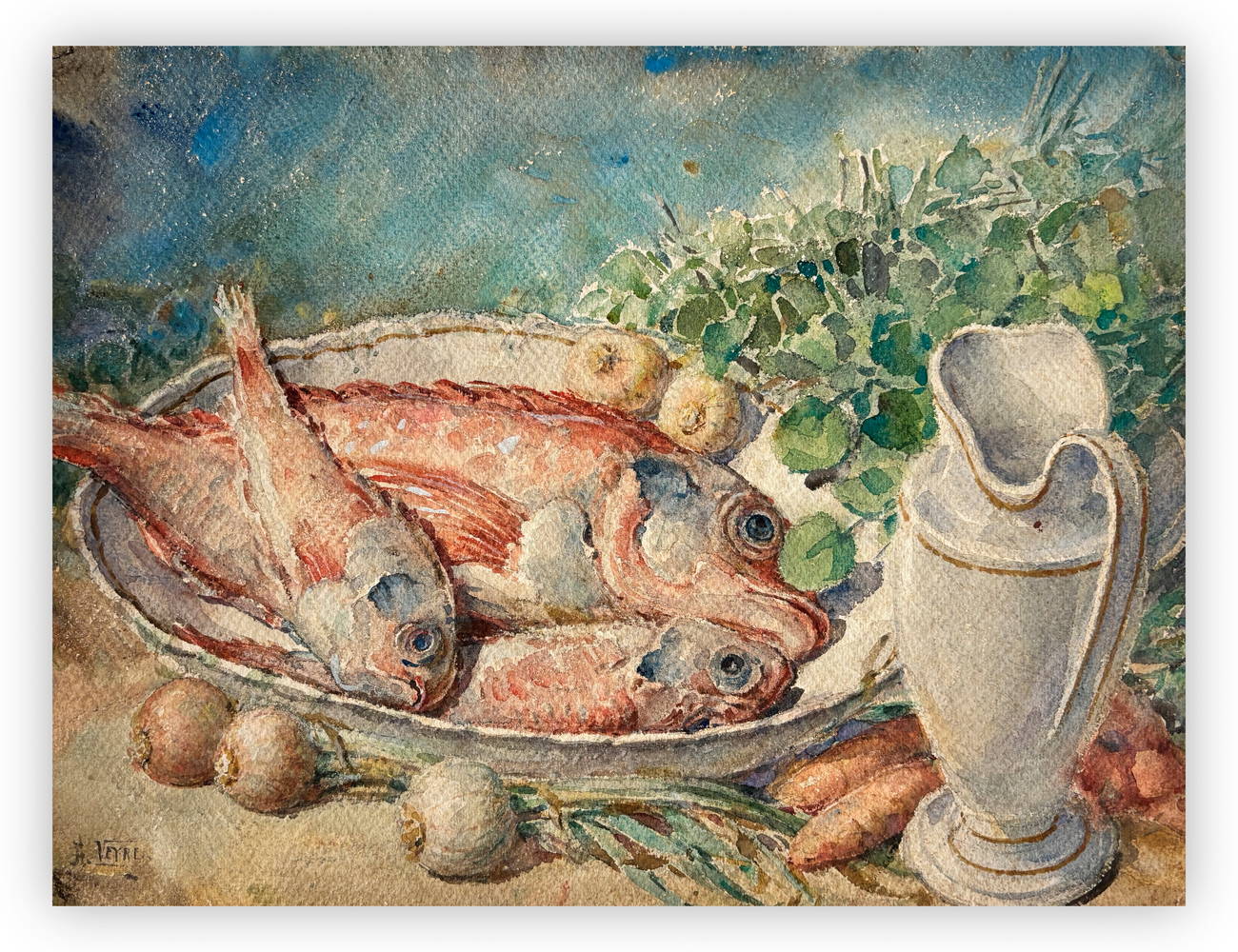 Lot 123 | A. VEYRE - Senza Titolo (Natutra morta con pesci e brocca)