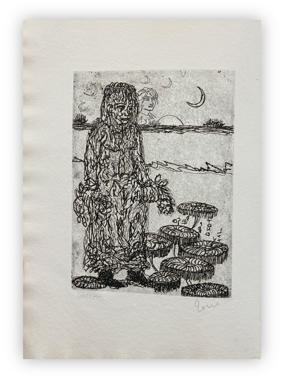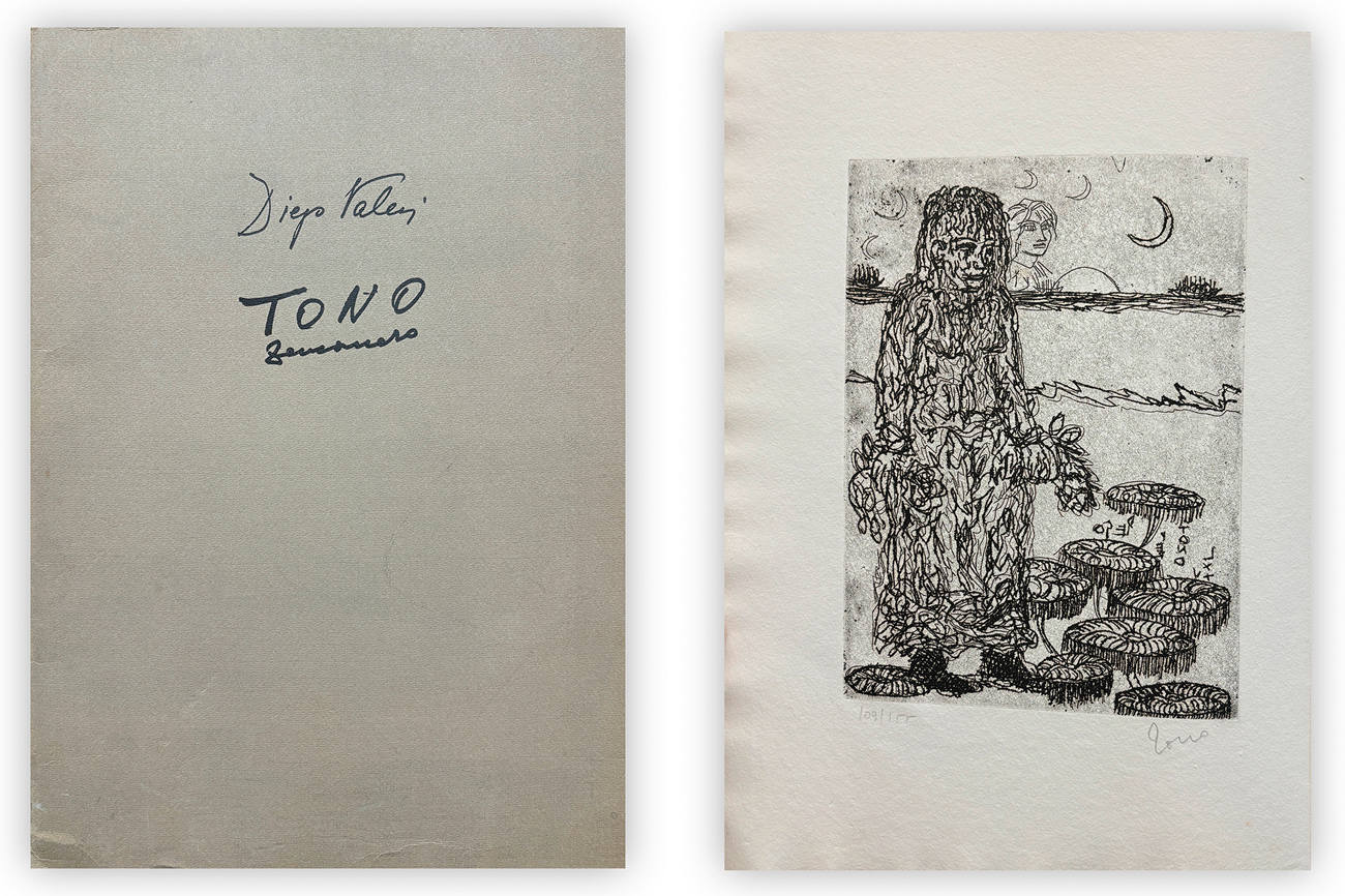 Edizione d'arte, realizzata su carta a tino delle Cartiere Magnani di Pescia, contenente 8 poesie inedite di Diego Valeri illustrate da un'acquaforte di Tono Zancanaro recante firma e numerazione (Esemplare 109/155) a matita al fronte