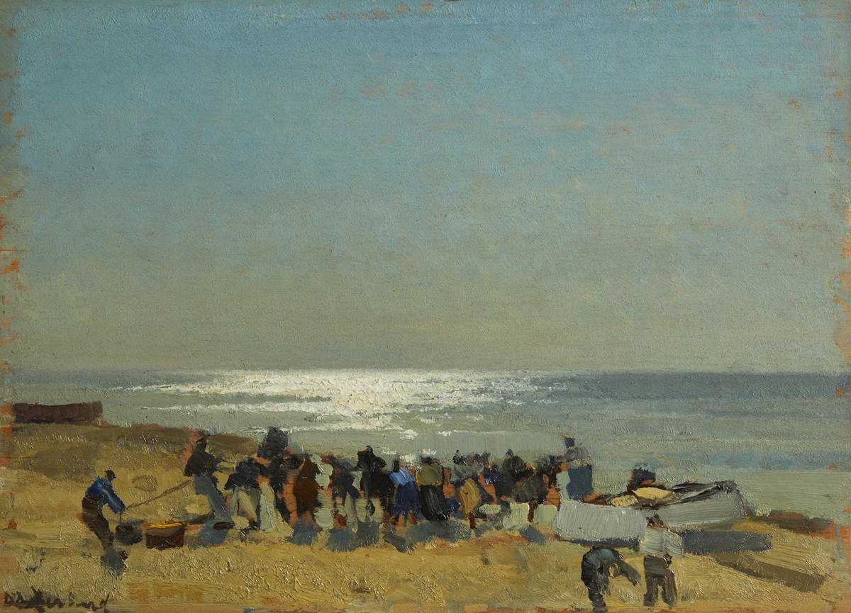 DE BERNARDI DOMENICO (1892 - 1963) MARINA, 1929. Olio su tavoletta. Cm 28,50 x 21,00. firma