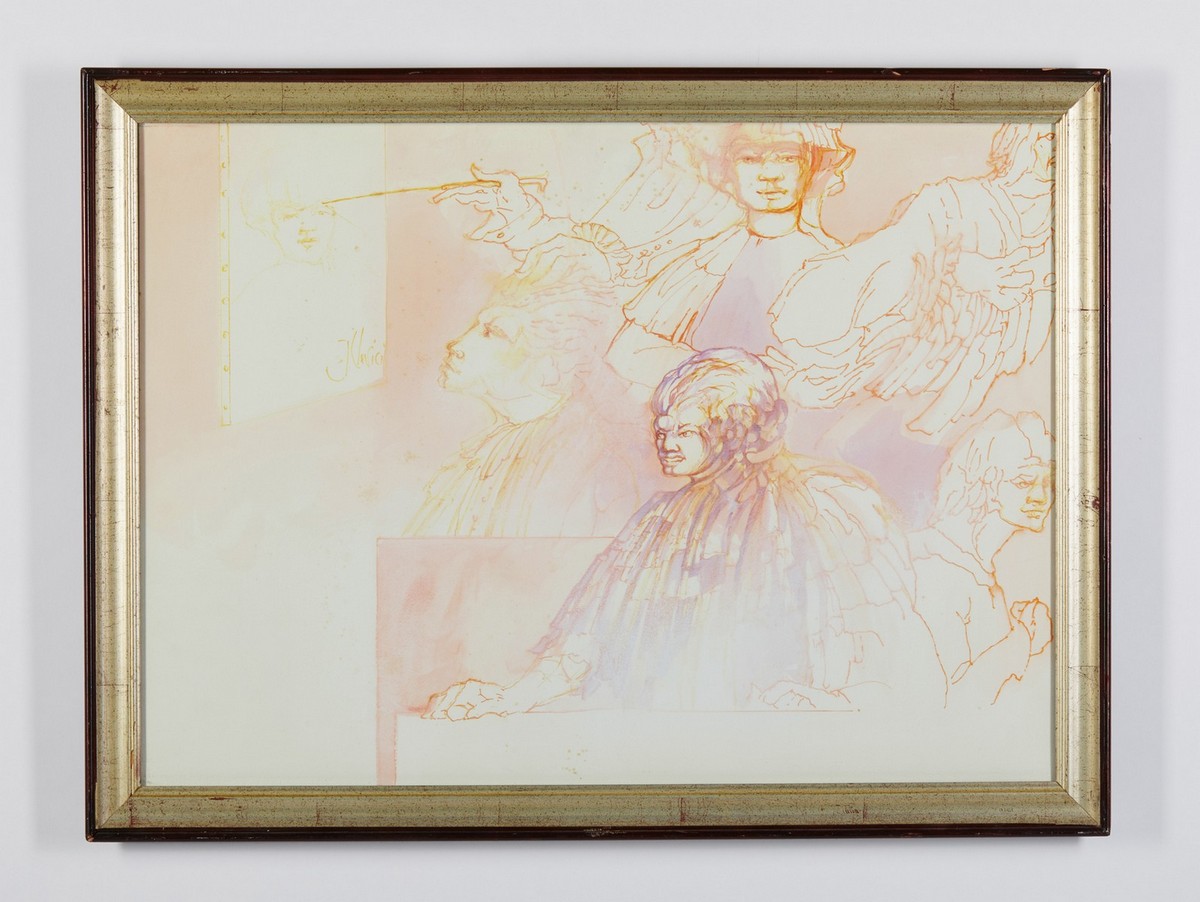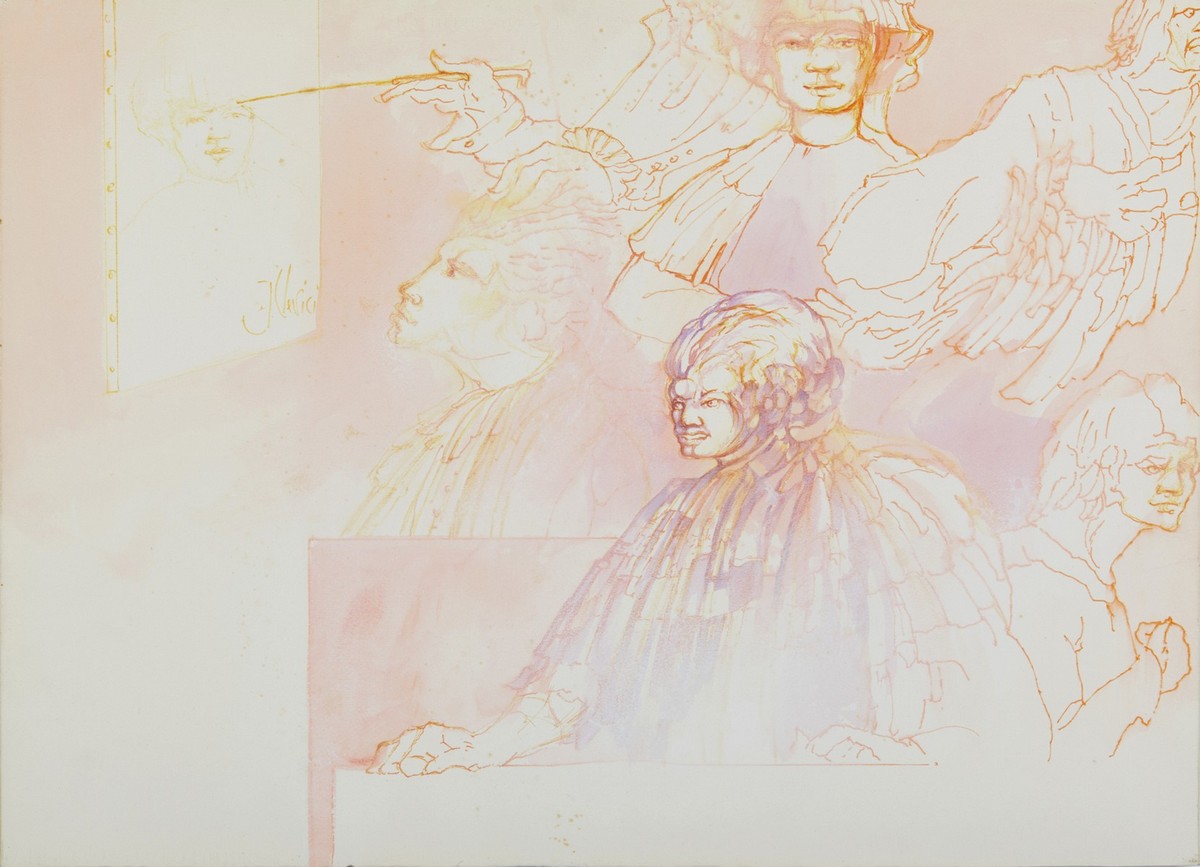 CLERICI FABRIZIO (1913 - 1993) TRIBUNALE, (1982). acquarello su carta applicata su tela. Cm 76,00 x 55,00. firma