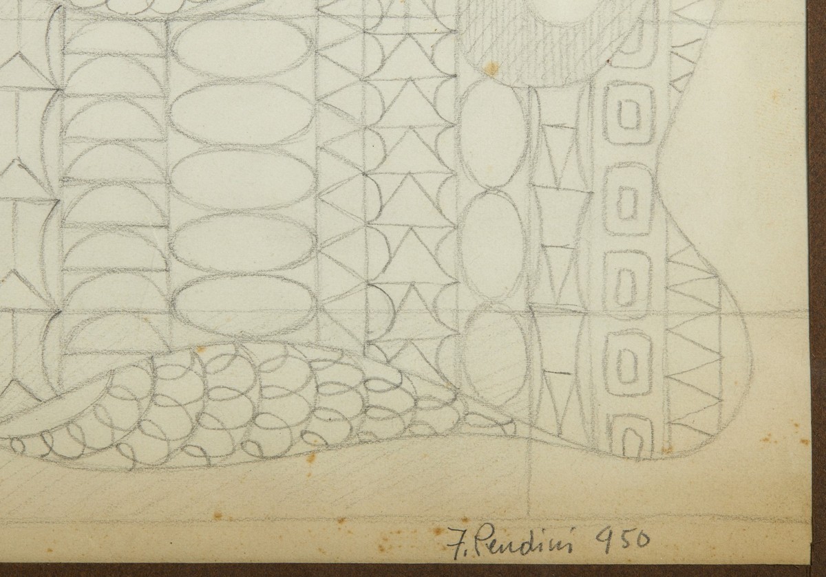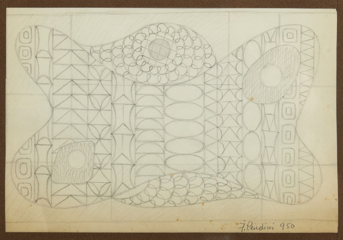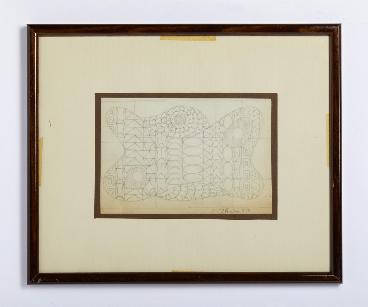 PENDINI FULVIO (1907 - 1975) COMPOSIZIONE, 1950. Matita su carta. Cm 22,50 x 15,50. firma e data. Cornice presente