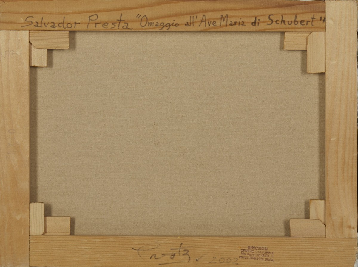 PRESTA SALVADOR (n. 1925) OMAGGIO ALL'AVE MARIA DI SHUBERT, 2002. Acrilico su carta applicata su tela. Cm 40,00 x 30,00. sul retro: firma, data, titolo, timbro di provenienza