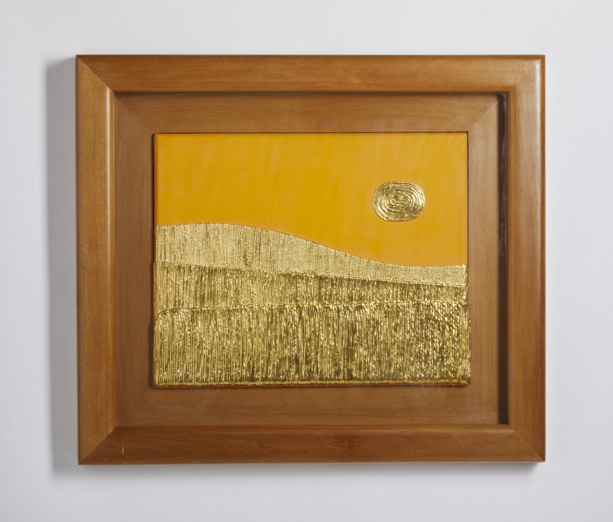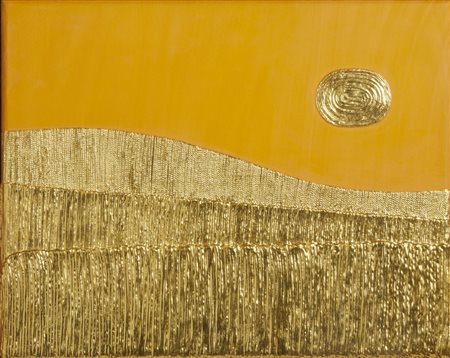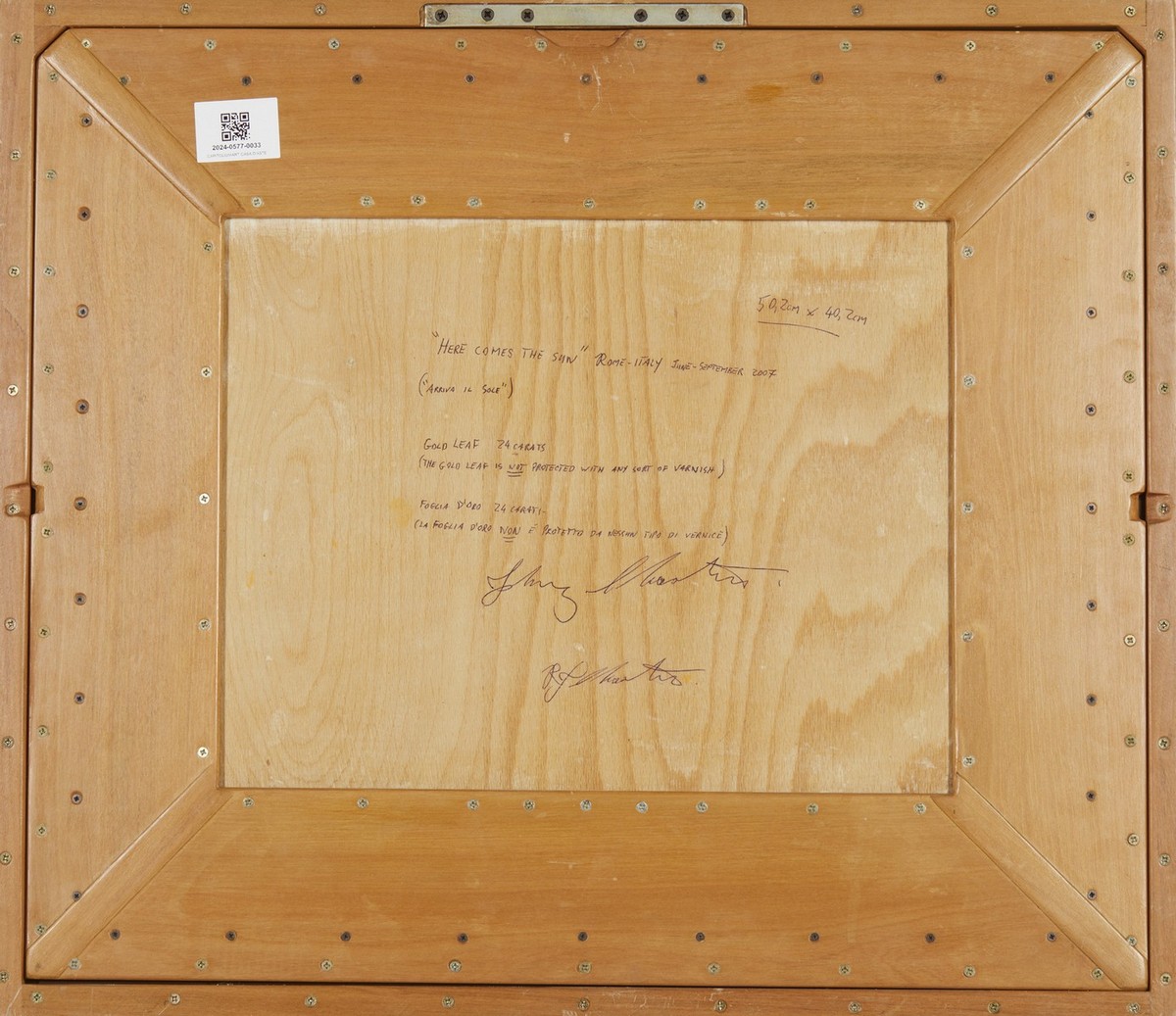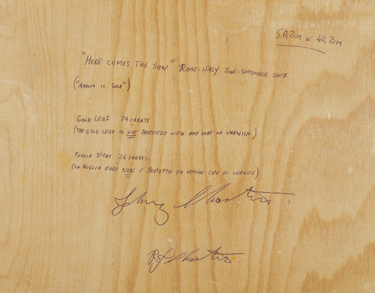 CHARLTON JOHNNY (n. 1945) HERE COMES THE SUN, 2007. foglia d'oro e tecnica mista su tavola. Cm 50,20 x 40,20. sul retro: firma, data, titolo. Cornice presente