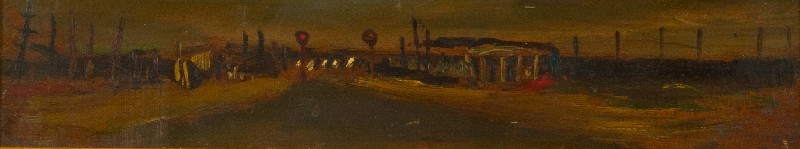 Mario Risoli (Fornovo 1918 - Viareggio 2003) NOTTURNO - MARINA, 1980 Olio su tavola, cm. 10x46 Sul verso: firma, data e titolo.