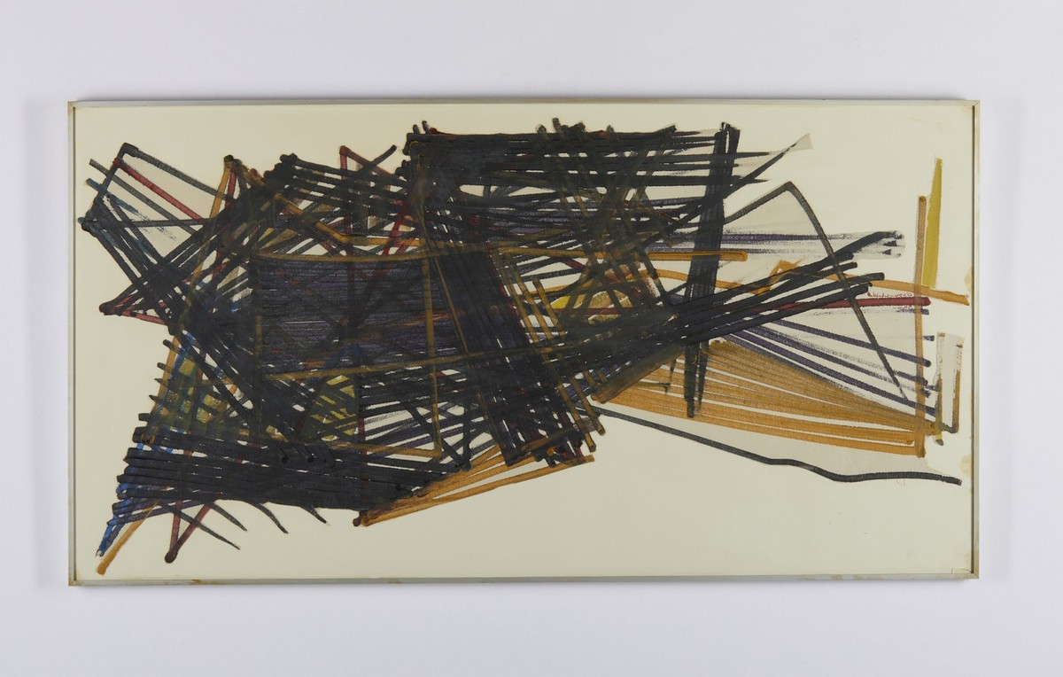 PELLICANO DOMENICO (n. 1952) SENZA TITOLO. tecnica mista e collage su carta. Cm 100,00 x 50,00. firma. Cornice presente