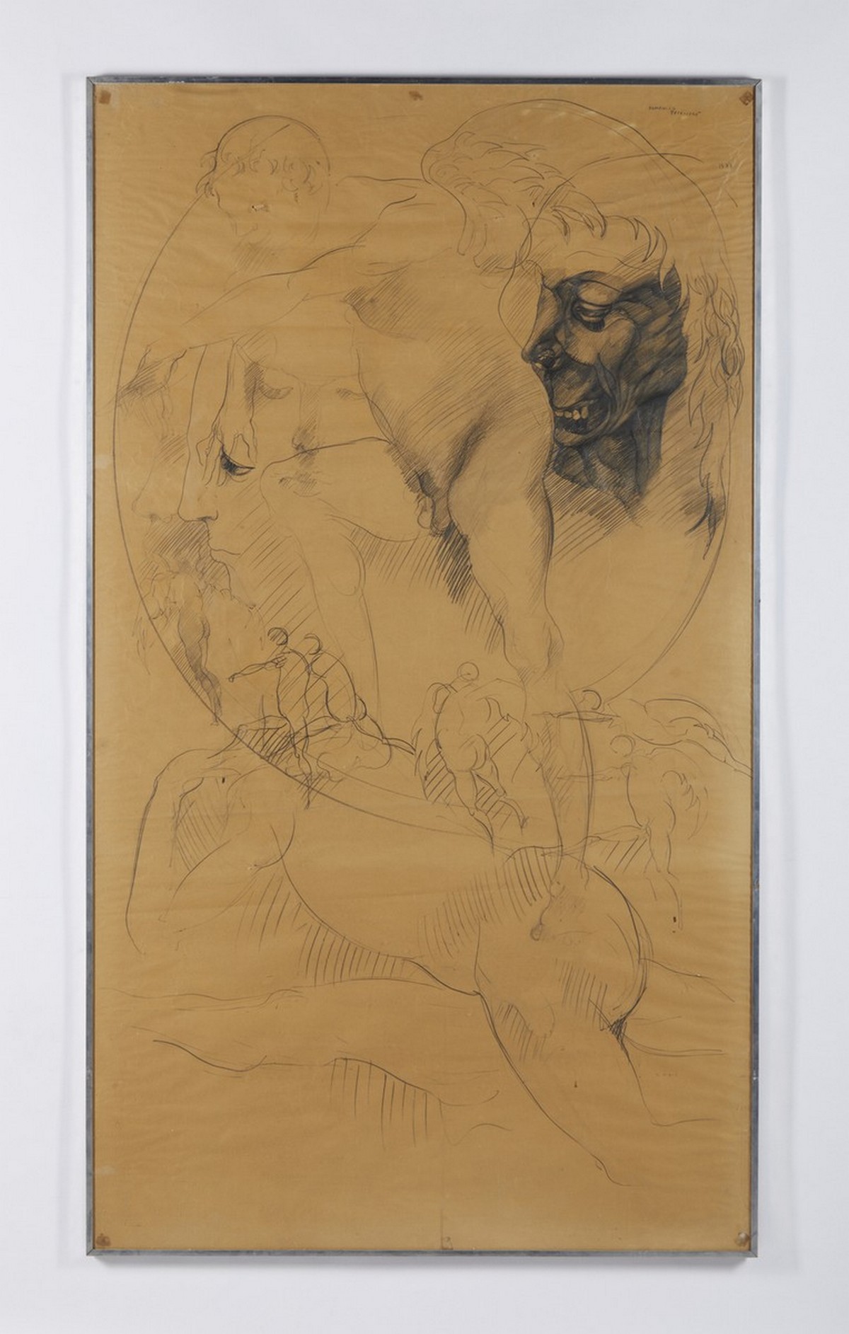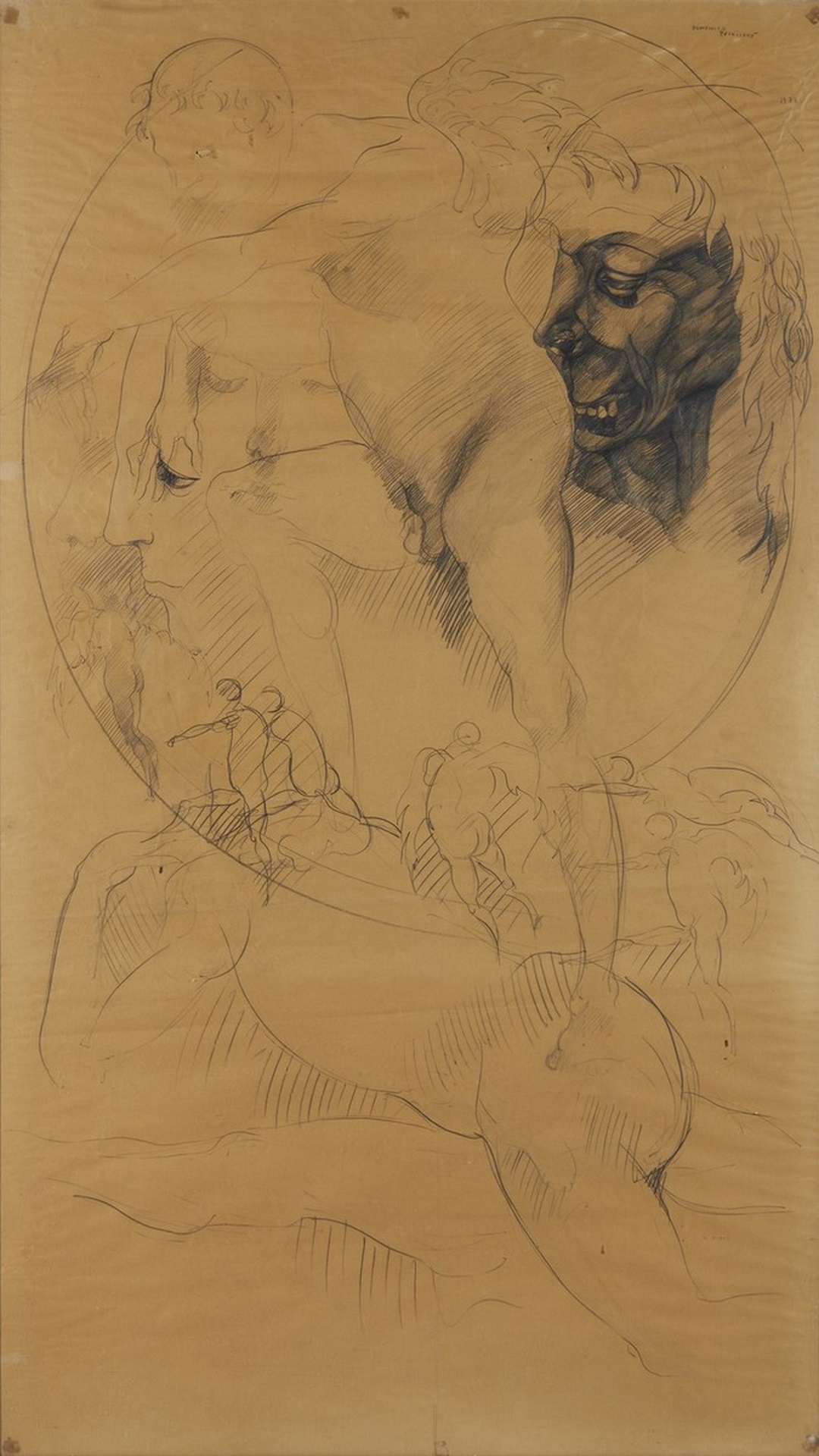 PELLICANO DOMENICO (n. 1952) SENZA TITOLO, 1973. tecnica mista su carta. Cm 101,00 x 176,00. firma, data. Cornice presente