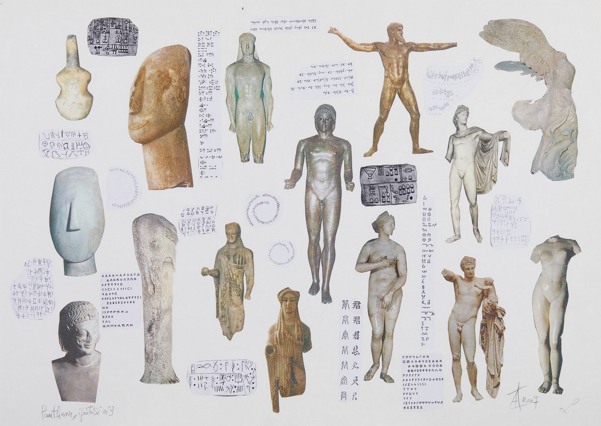 LORA - TOTINO ARRIGO (1928 - 2016) PANTHEON, IPOTESI N.3, 2007. Tecnica mista e collage su cartoncino. Cm 70,00 x 50,00. firma, data, titolo