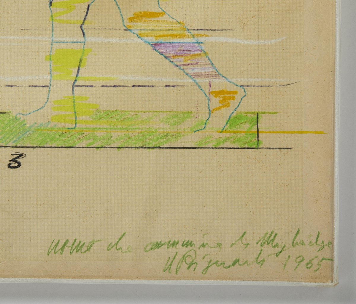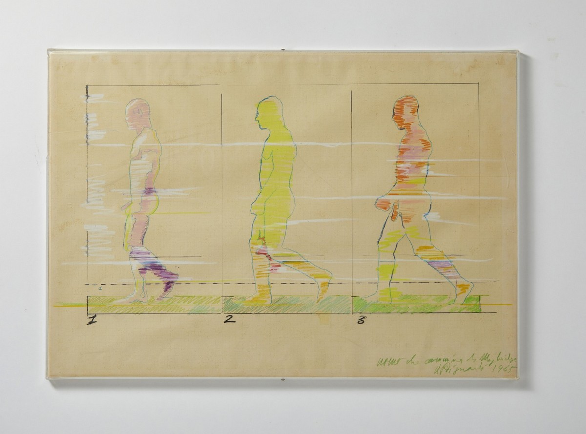 BIGNARDI UMBERTO (1935 - 2022) UOMO CHE CAMMINA ..., 1965. tecnica mista su carta millimetrata. Cm 69,00 x 48,00. firma, titolo, data. Cornice presente