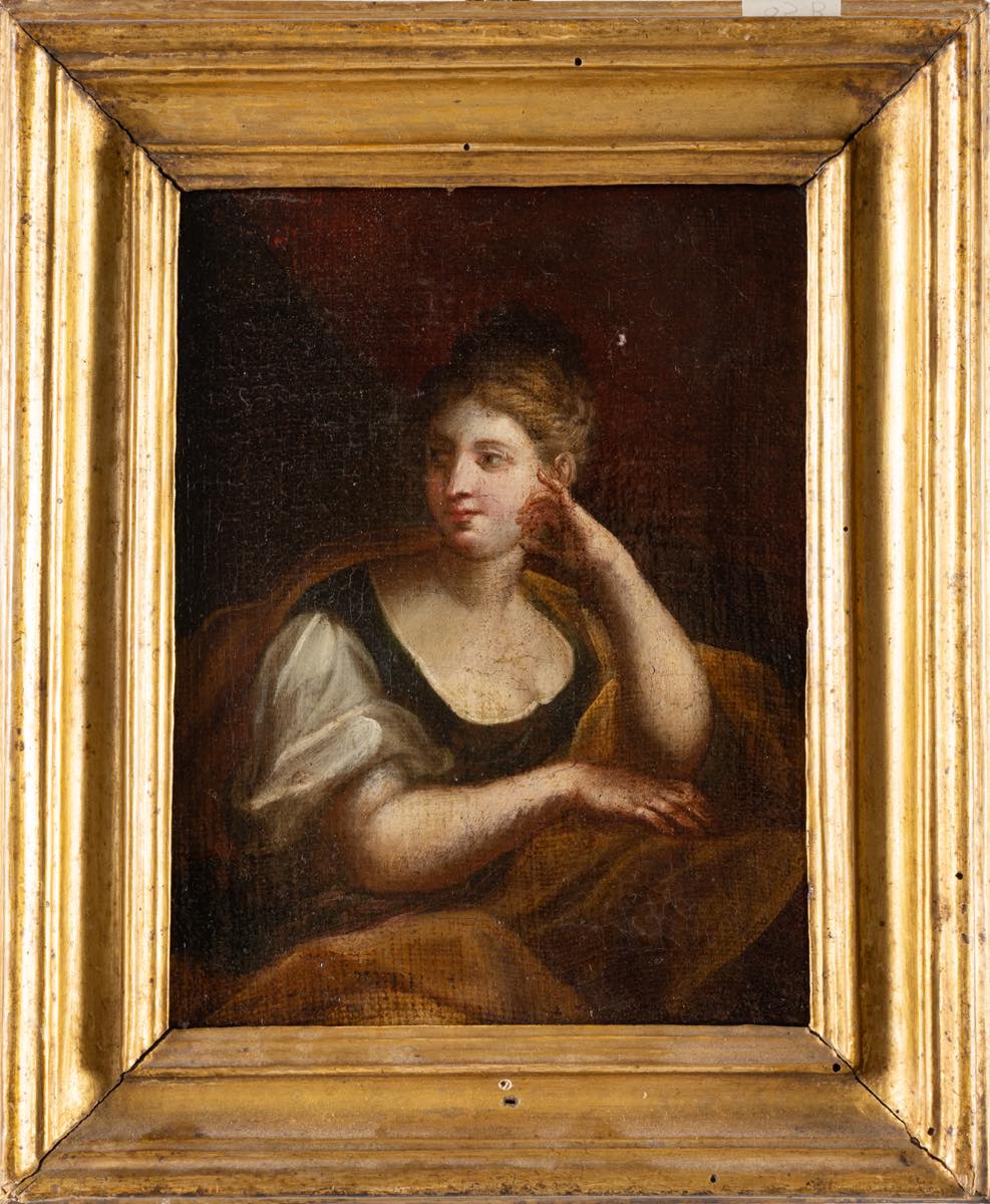 Pittore del XIX secolo. Ritratto femminile in un interno.
