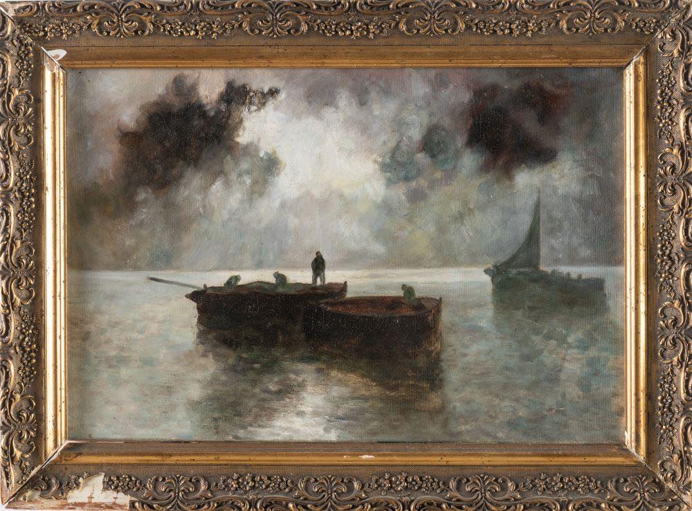 Olio su tela. Lievi difetti. In cornice.