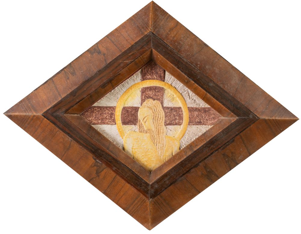 Raffigurante volto di Cristo sulla croce. Cornice in legno di gusto art déco.