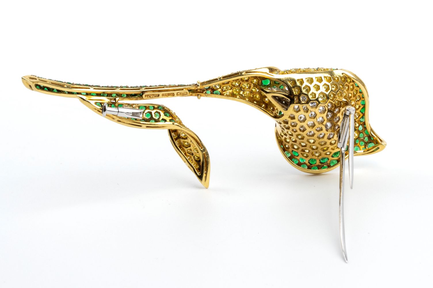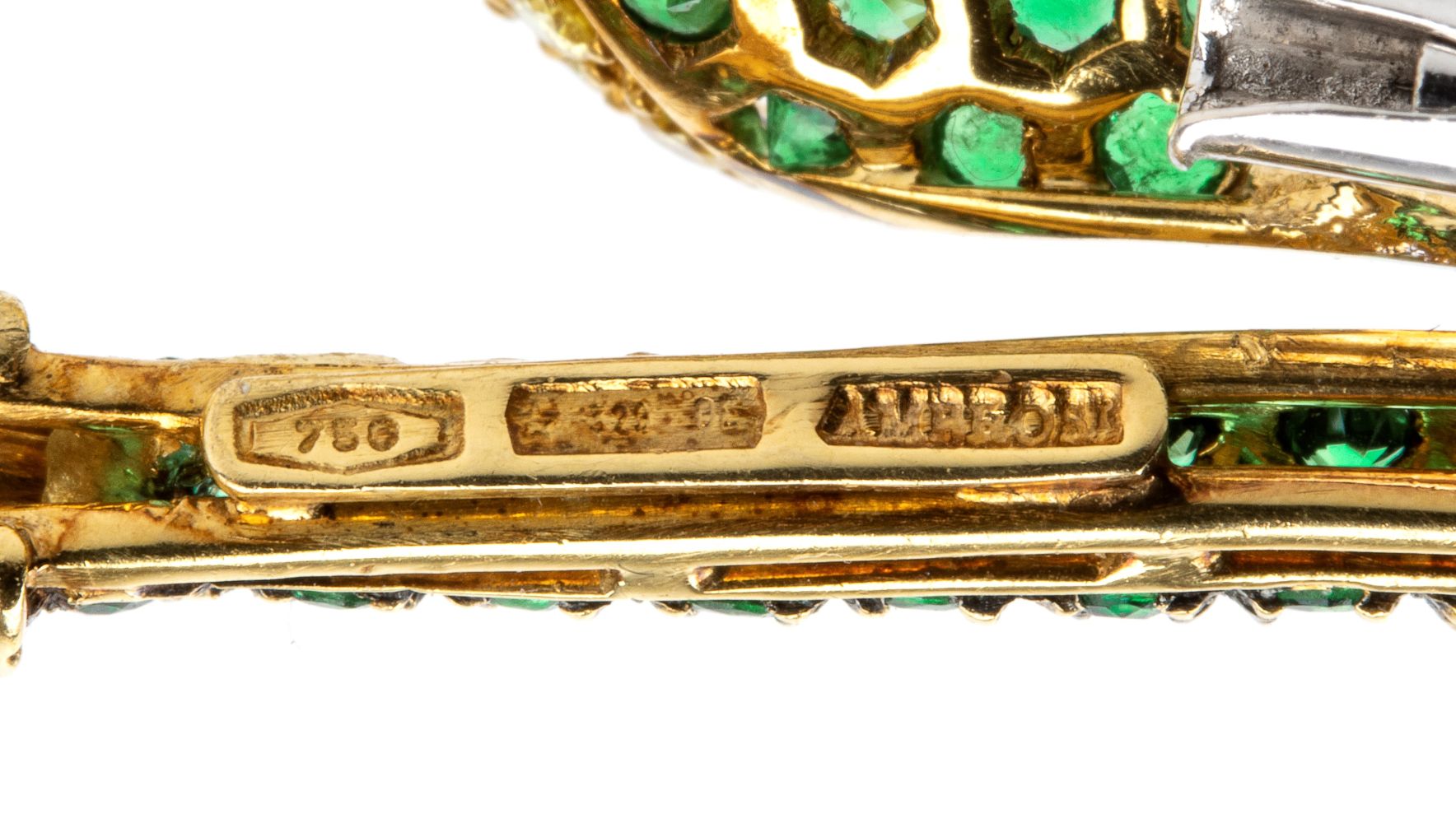 AMBROSI GIOIELLI Spilla in oro, smeraldi e diamanti