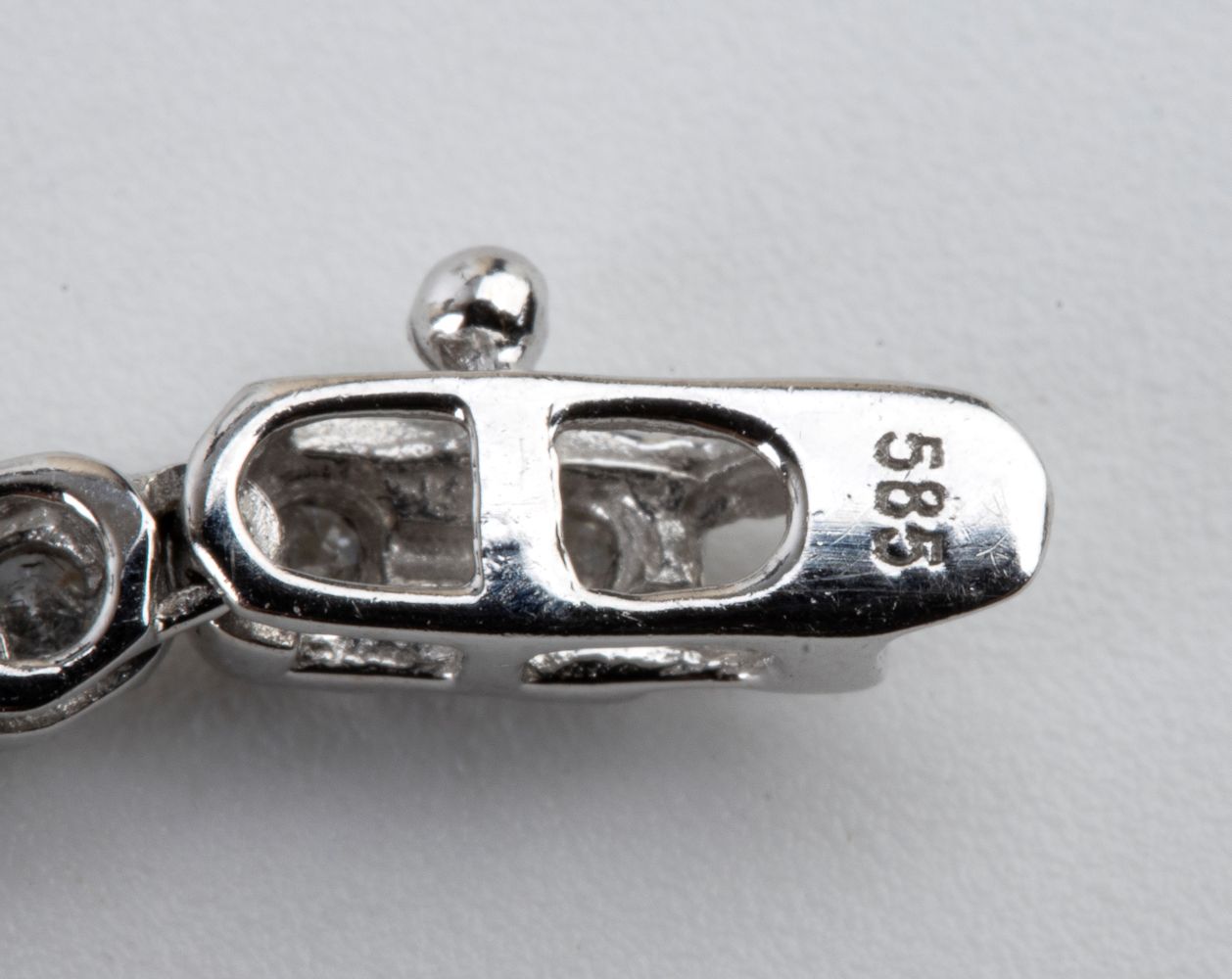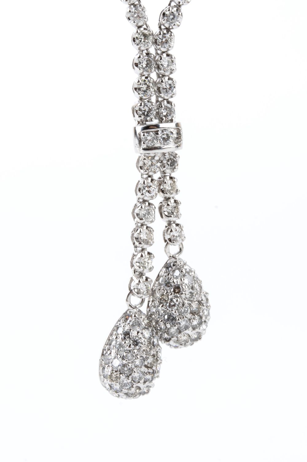 in oro bianco 14k, con linea di diamanti e nappine terminali in pave' di diamanti.