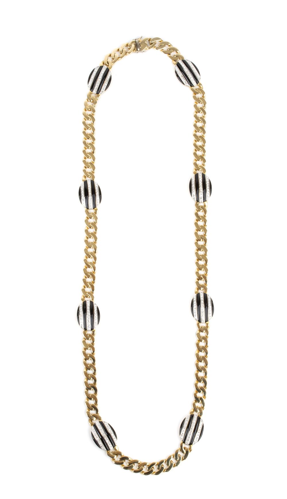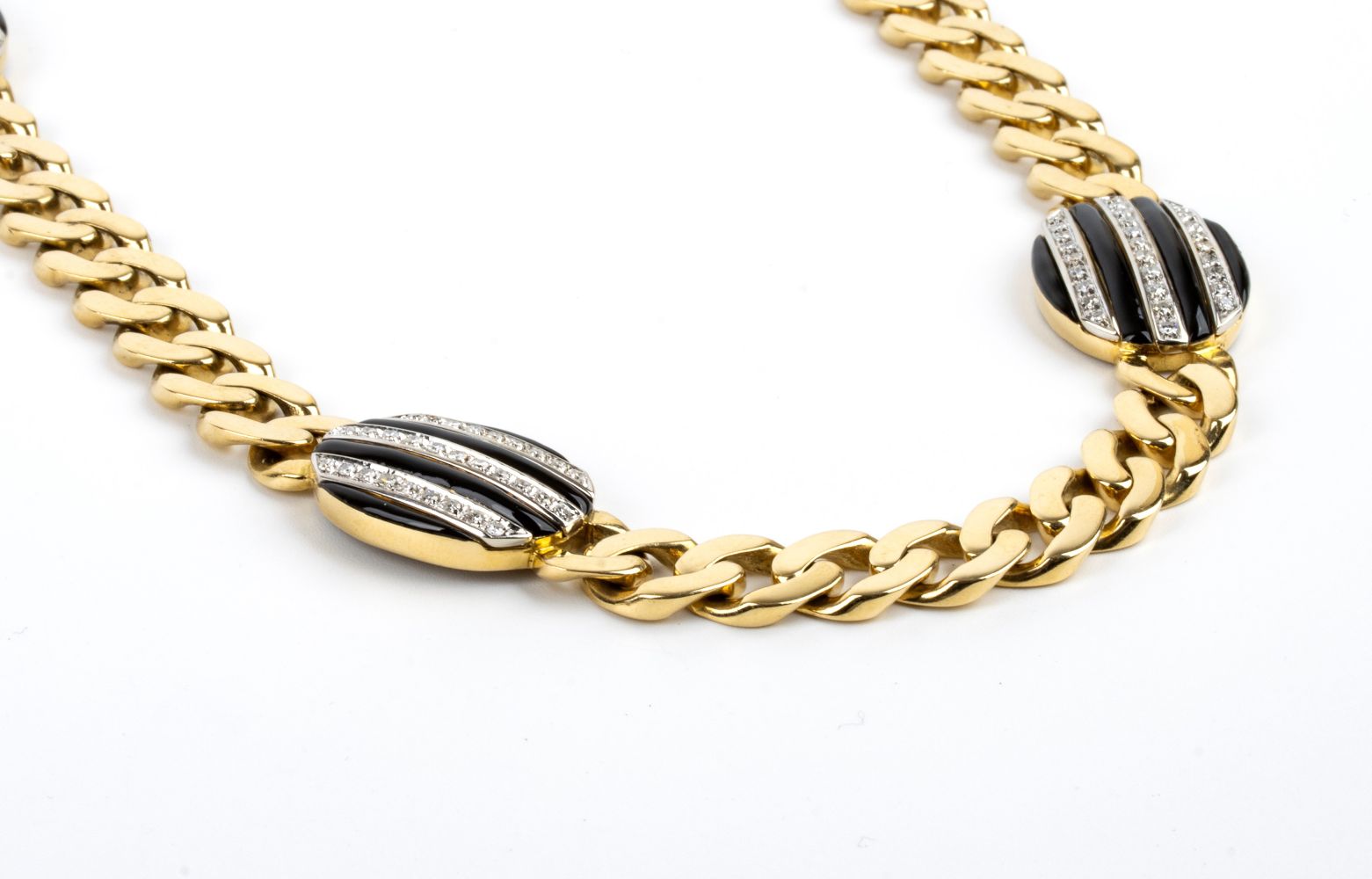 Lungo girocollo in oro con smalto neri e diamanti Anni '80