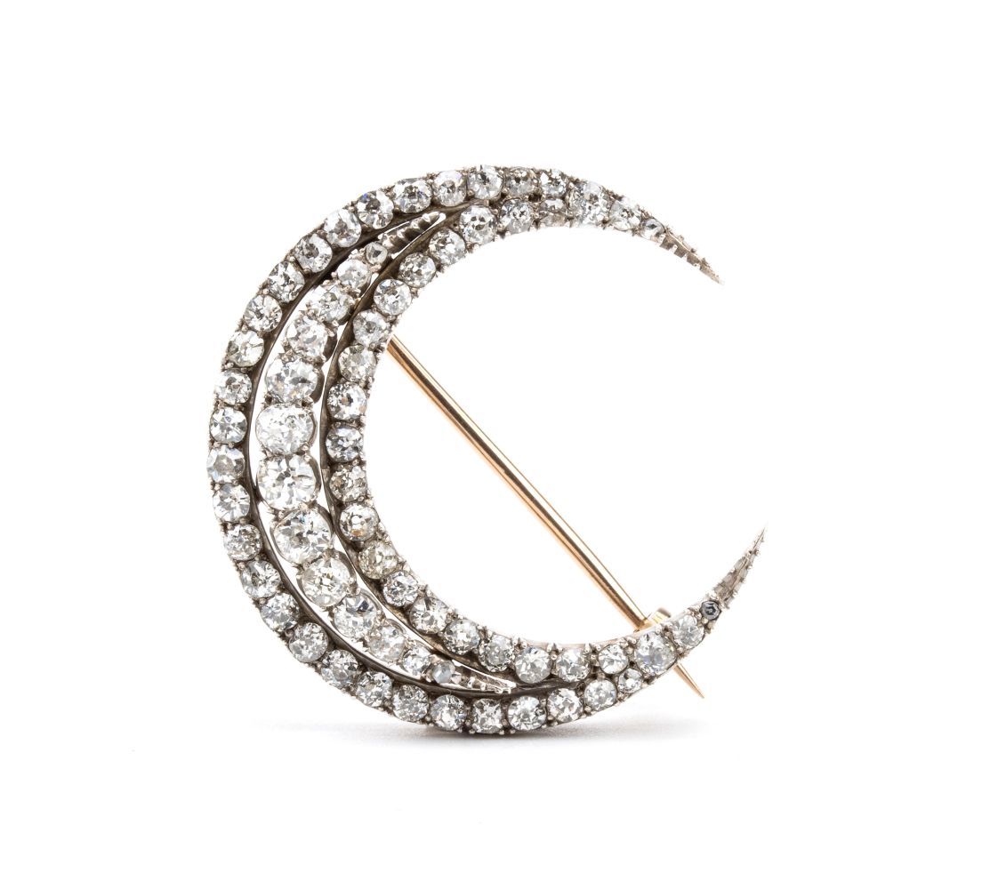 a forma di luna crescente, incastonata con tre file di diamanti.