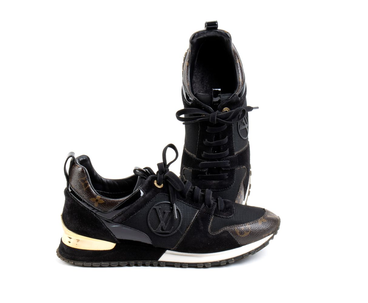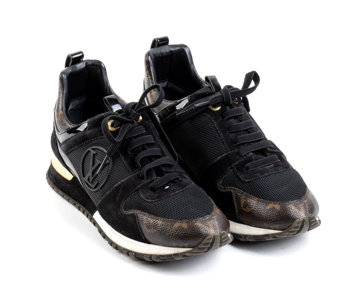 Louis Vuitton sneakers Run Away impreziosita da finiture in iconica tela Monogram e dal logo LV Circle oversize sul lato.