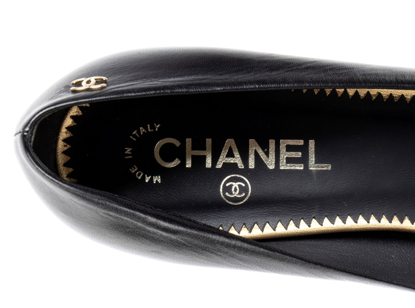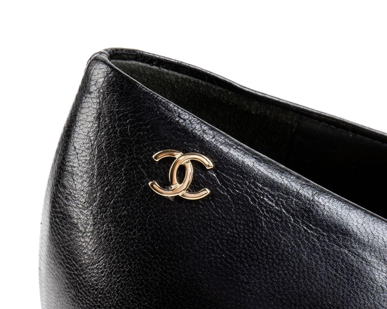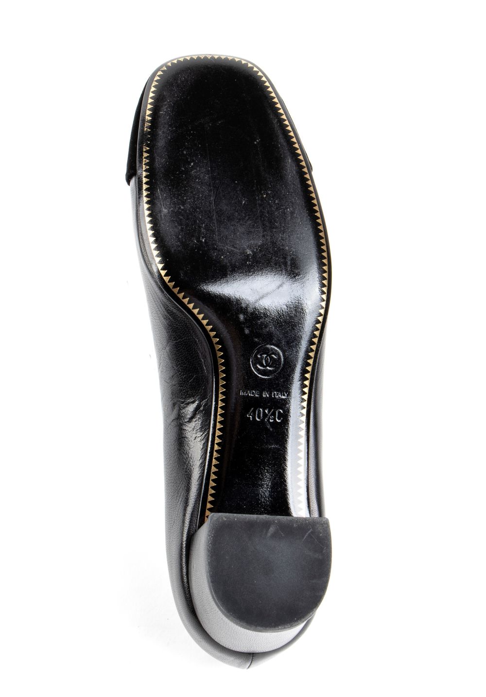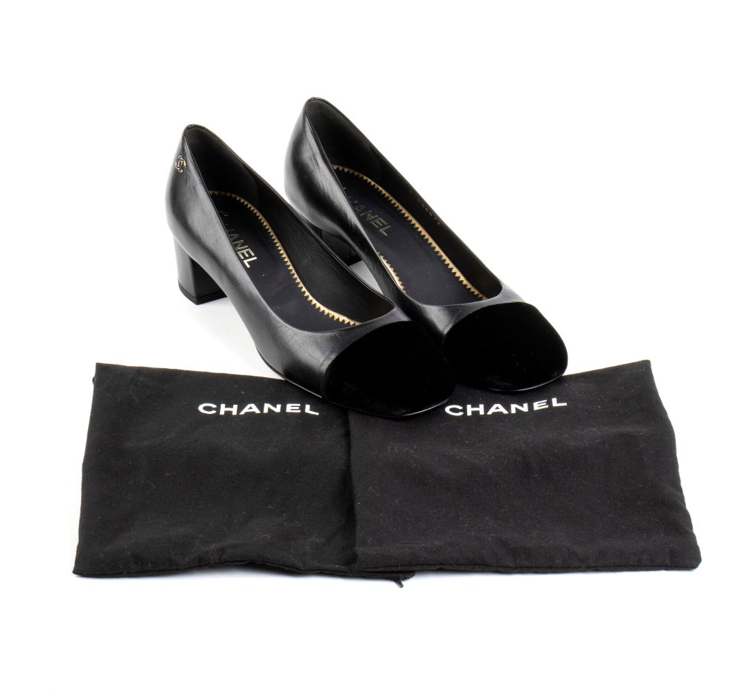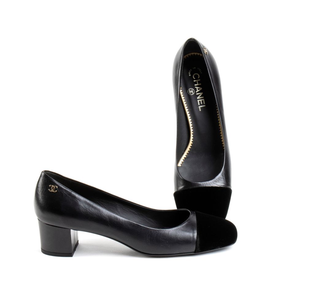 Chanel scarpe In pelle nera di vitello spazzolato con la punta in velluto 40 1/2, tacco 4,5 cm.