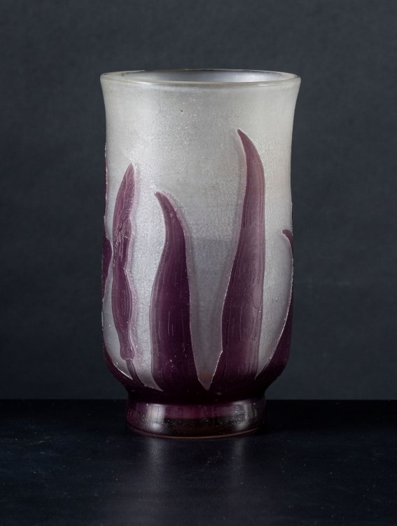 Émile Gallé (1846 - 1904), Francia. Vaso in vetro a forma di calice di tulipano lavorato ad acido ed a cammeo.