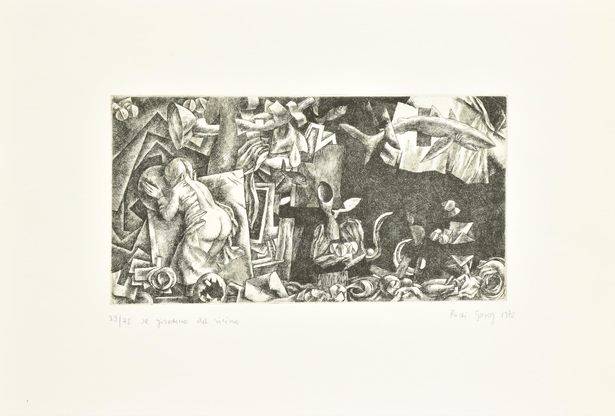 Rudi Gorog IL GIARDINO DEL VICINO incisione su carta Fabriano, battuta cm...