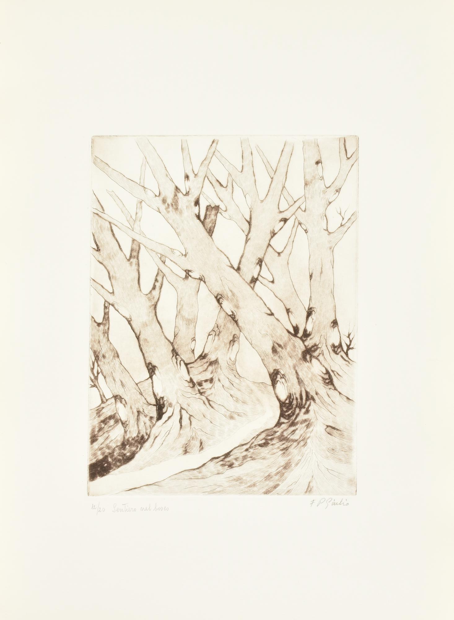 F. P. Giulio SENTIERI NEL BOSCO incisione su carta, battuta cm 27x20, su...