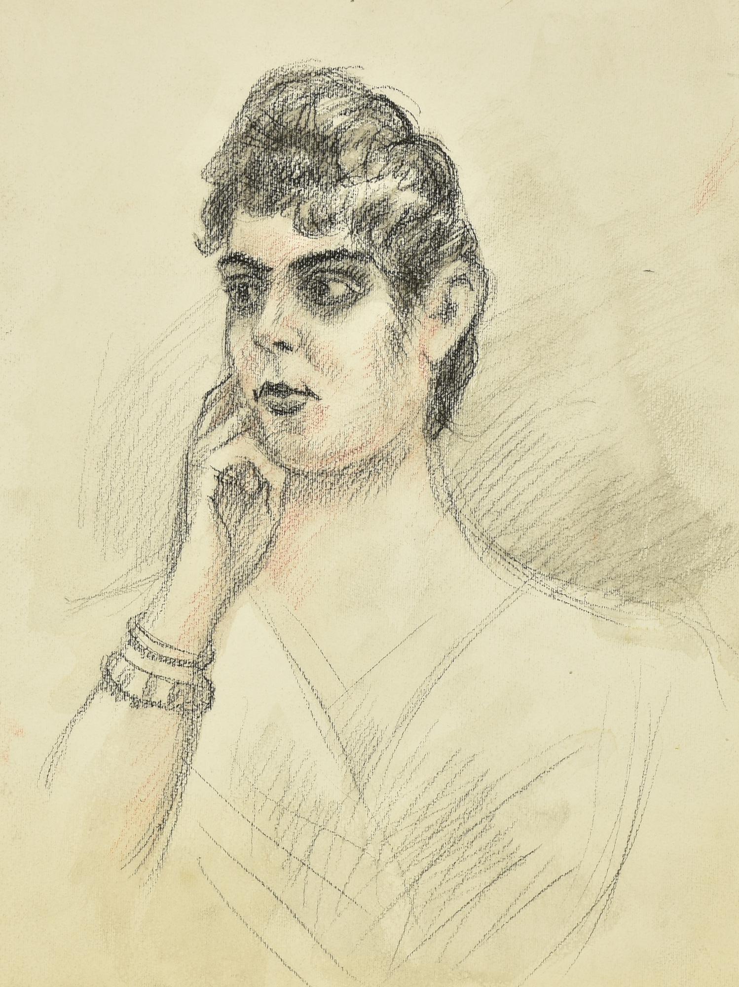 Enrico Allimandi GIULIANA tecnica mista su carta, cm 43x33 sul retro: dedica...