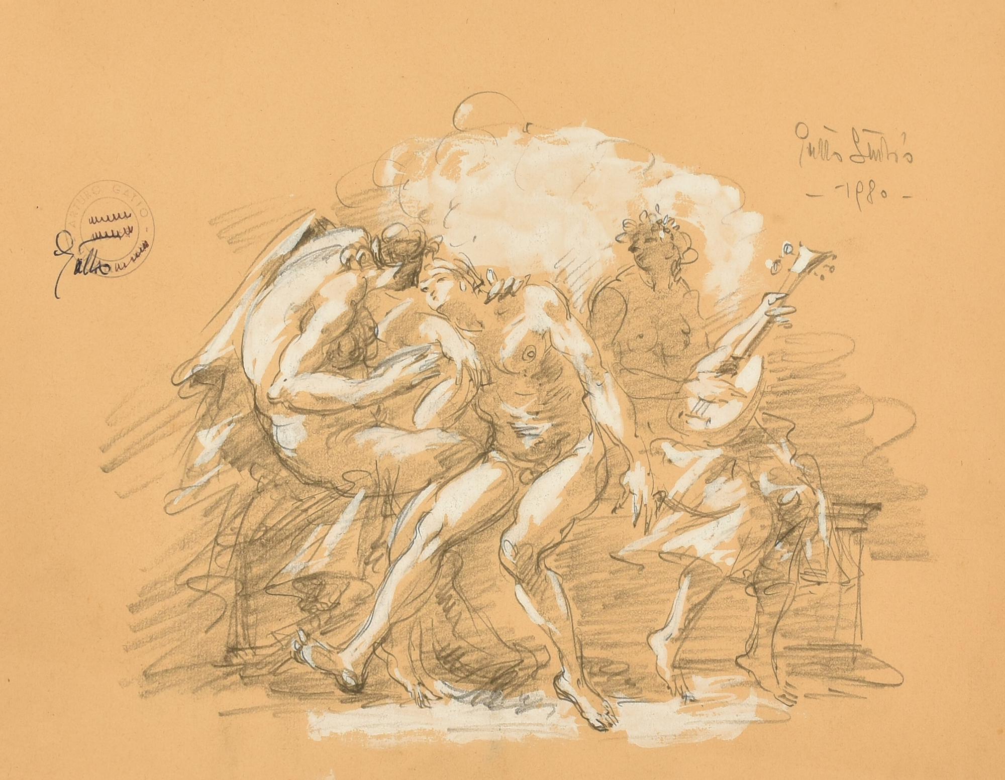 Arturo Gatto SCENA CLASSICA tecnica mista su carta, cm 24,3x34,6 firma, data...