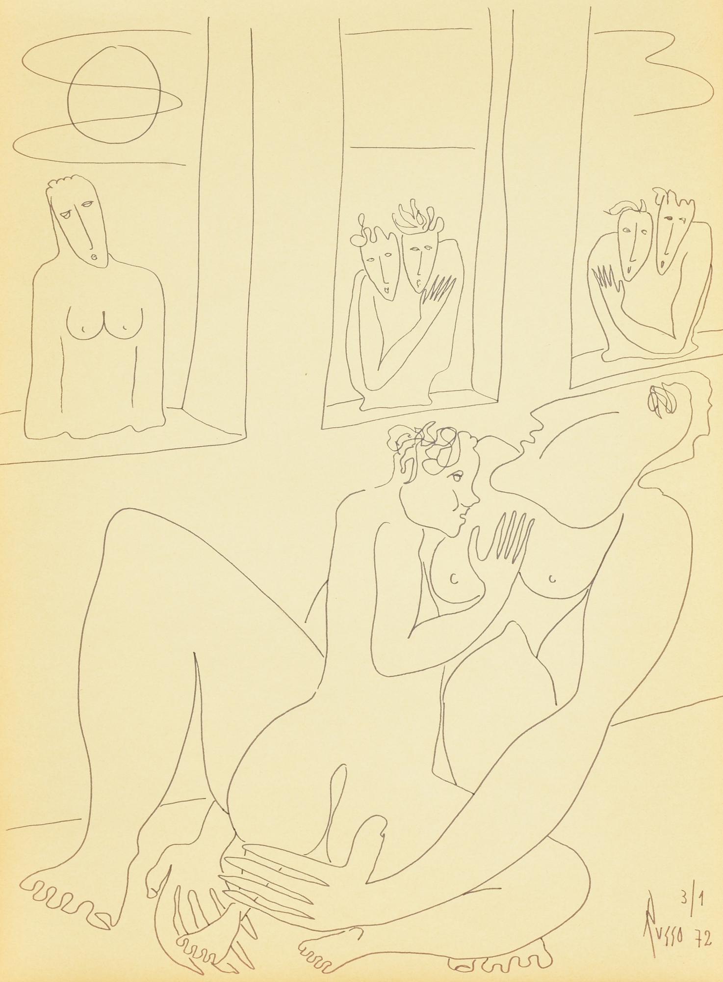 Russo VOYERISMO pennarello su carta, cm 40x30 firma e data eseguito nel 1972